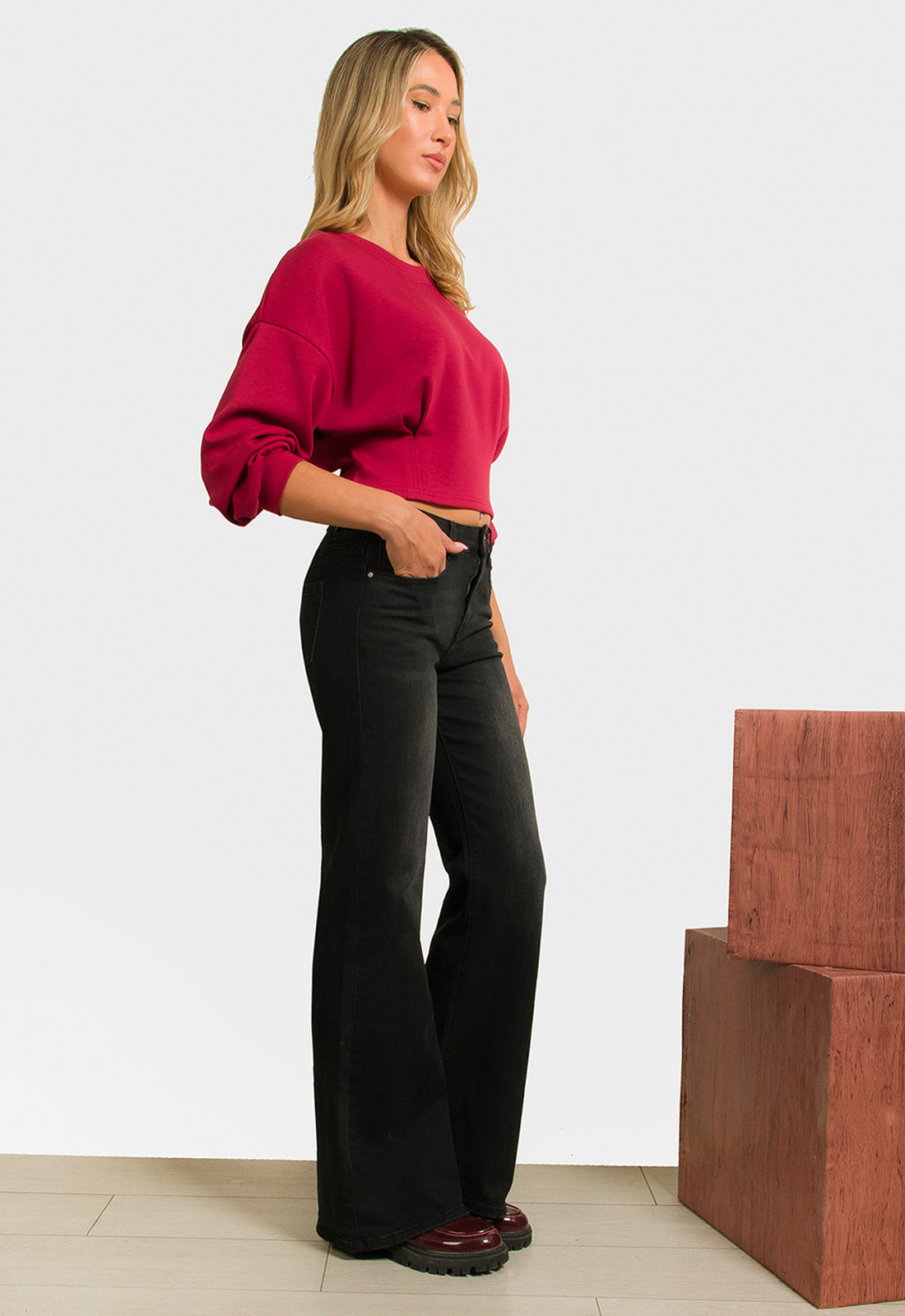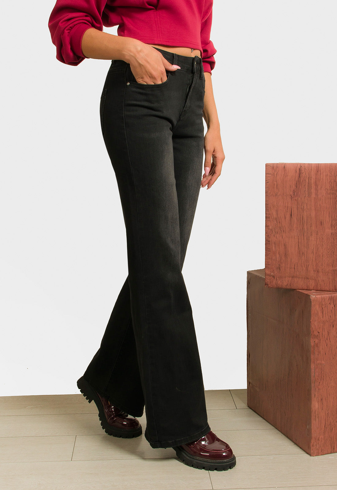 -Παντελόνι καμπάνα σε ύφασμα τζιν μικρής ελαστικότητας