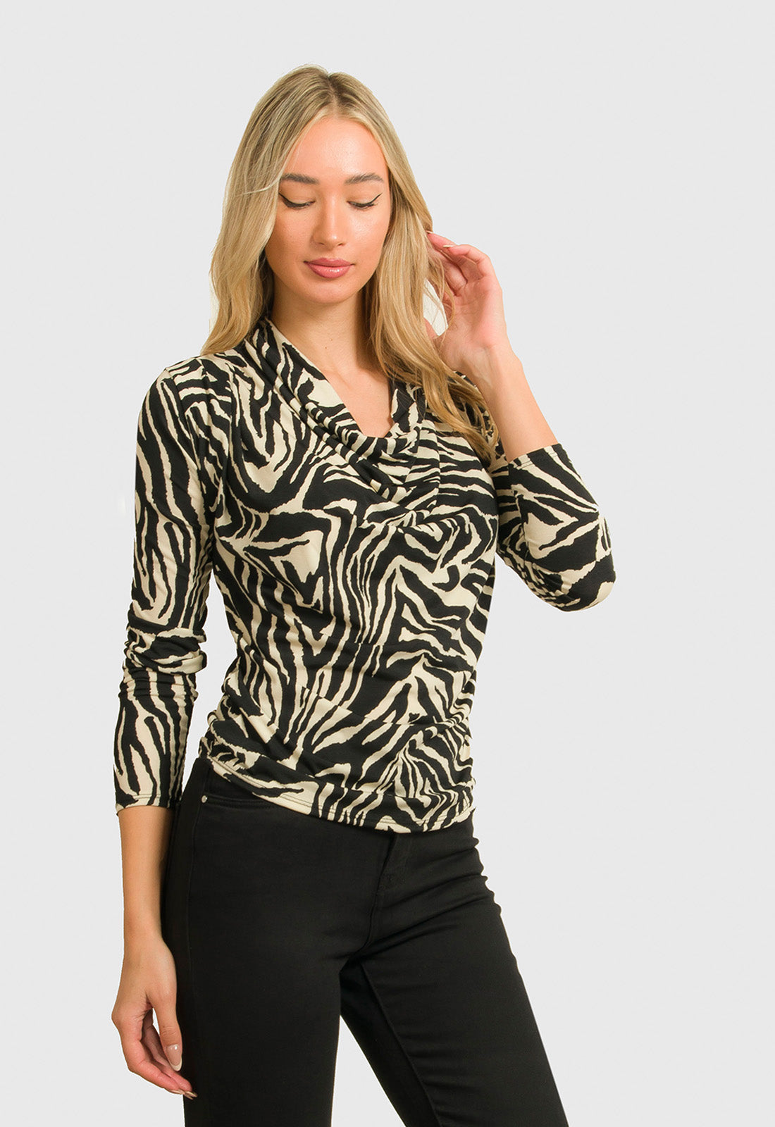 ΜΠΛΟΥΖΑ ΝΤΡΑΠΕ ANIMAL PRINT-ΜΑΥΡΗ