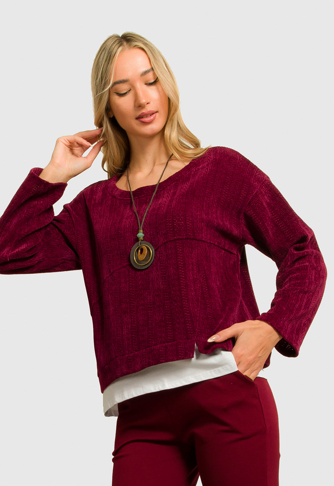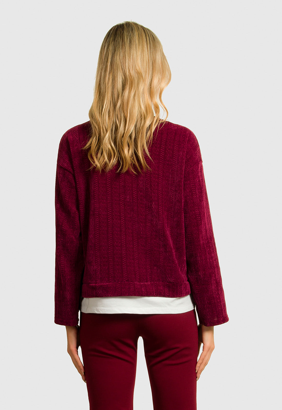 -Μπλούζα σε ελαστικό ύφασμα σενιλ με ανάγλυφη ρίγα