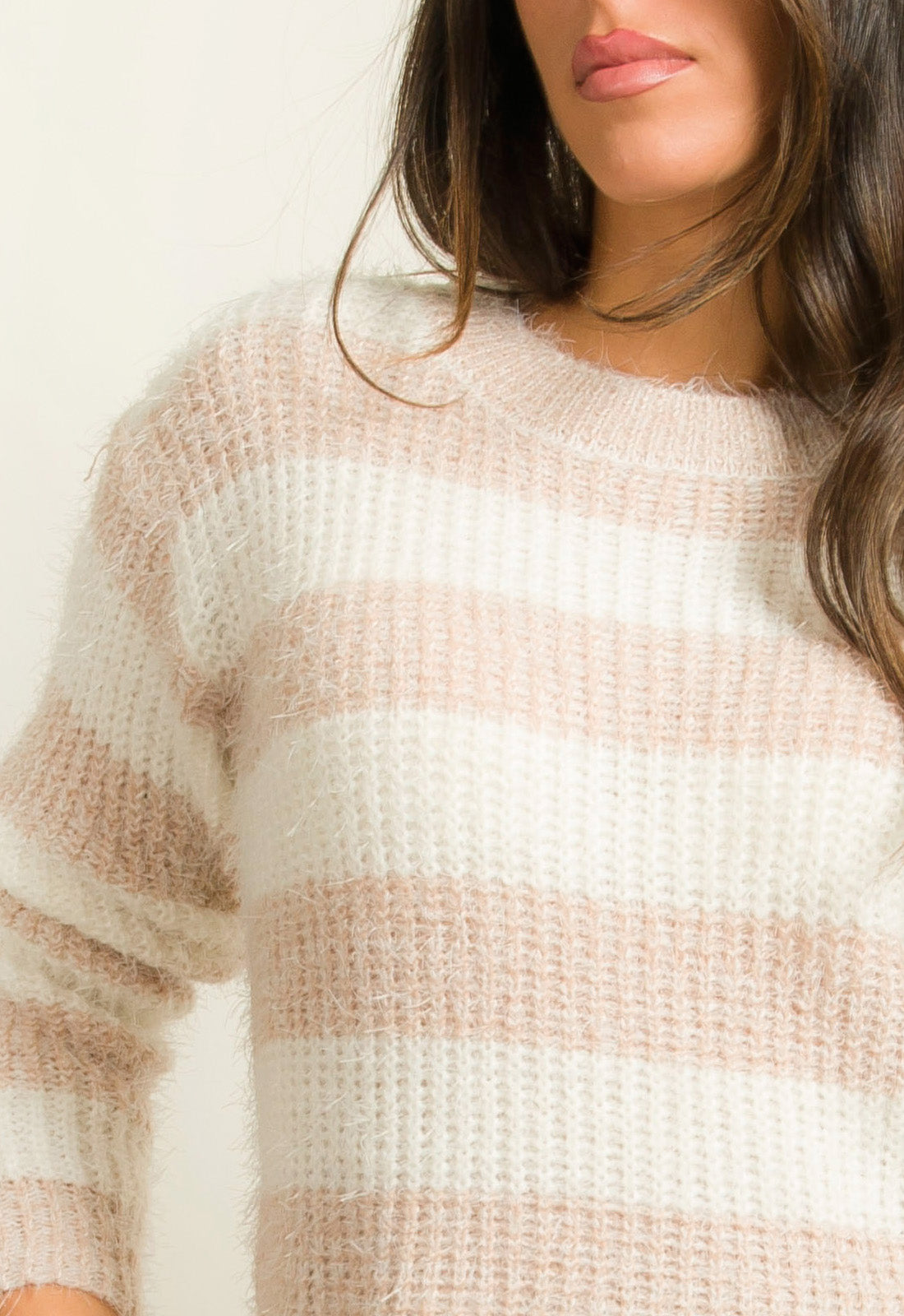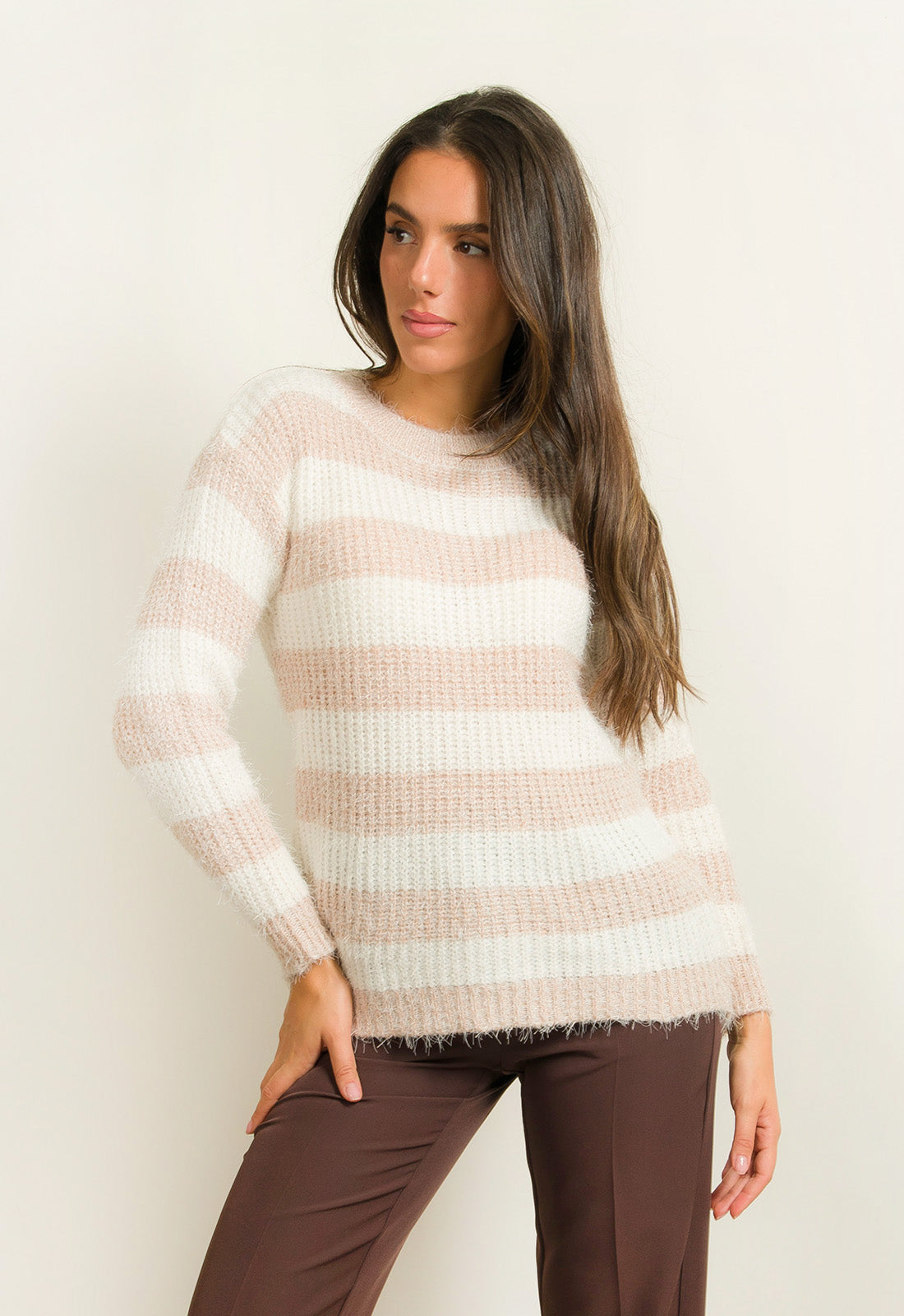 -Πλεκτό ριγέ με πολύ μαλακό τρίχωμα
