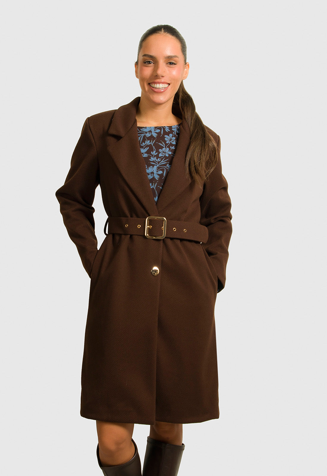 -Παλτό μίντι σε σταθερό ύφασμα διαγωνάλ