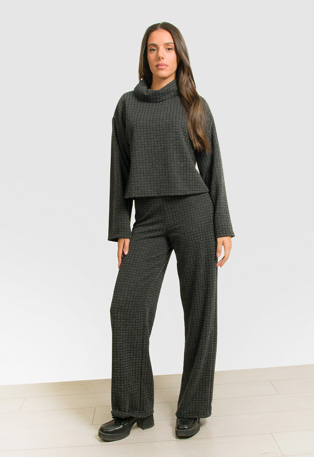 -Παντελόνα σε ελαστικό πλεκτό ύφασμα ζακάρ