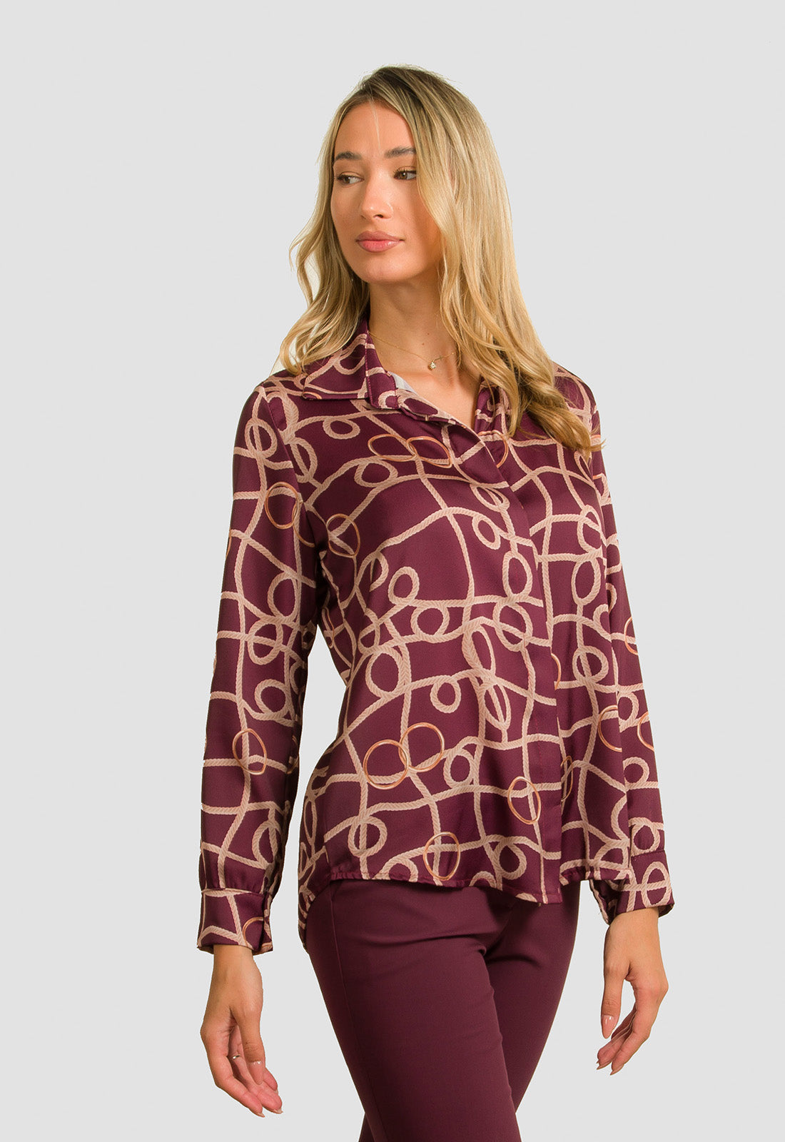 -Πουκάμισο σε σταθερό εμπριμέ ύφασμα εμπριμέ