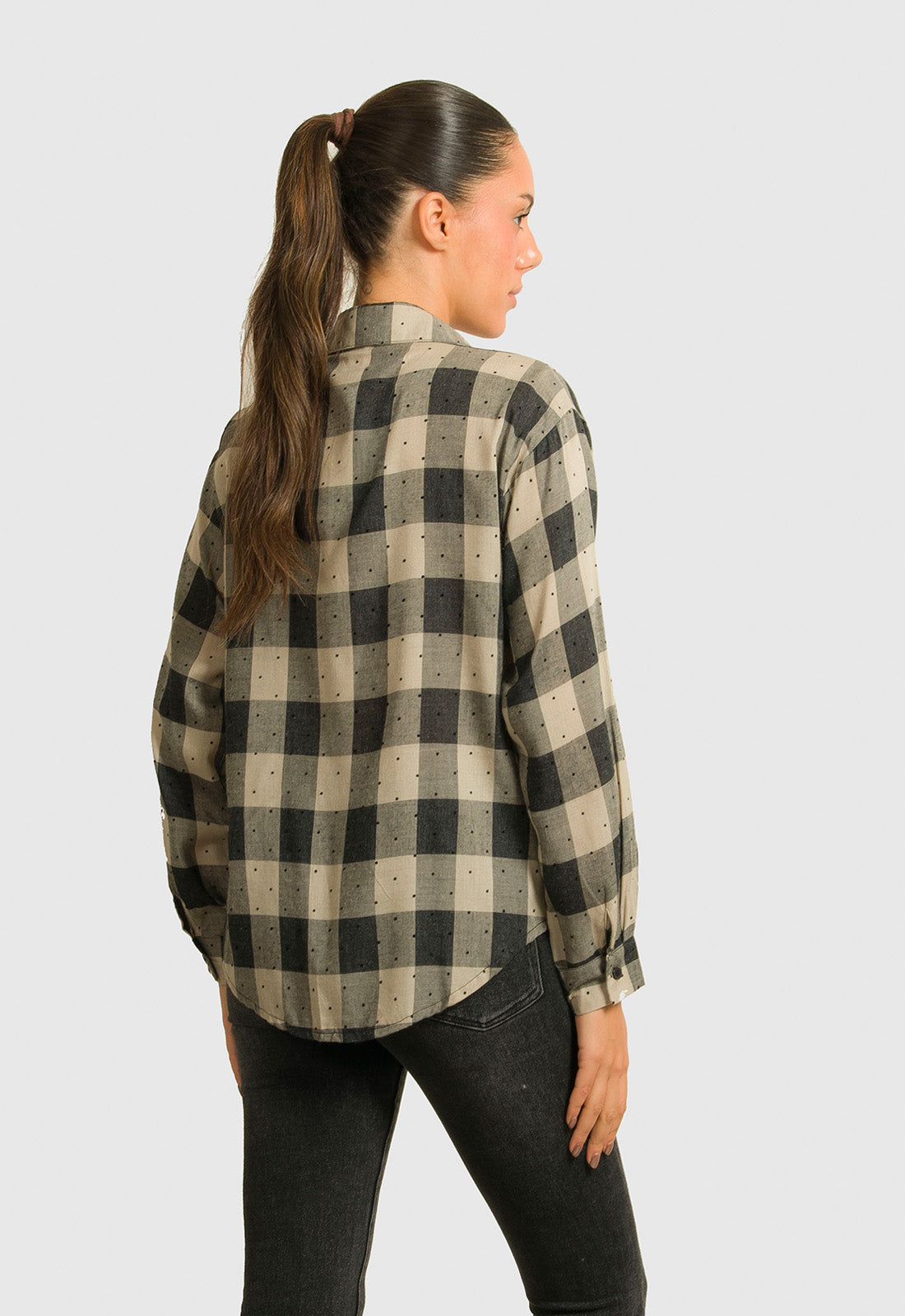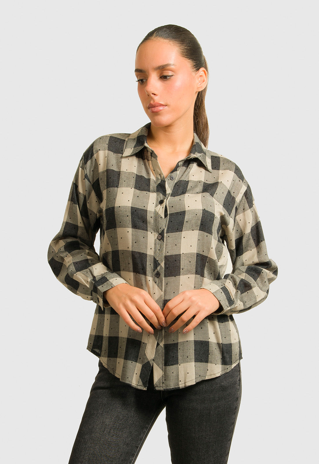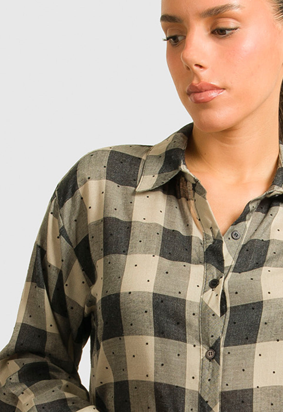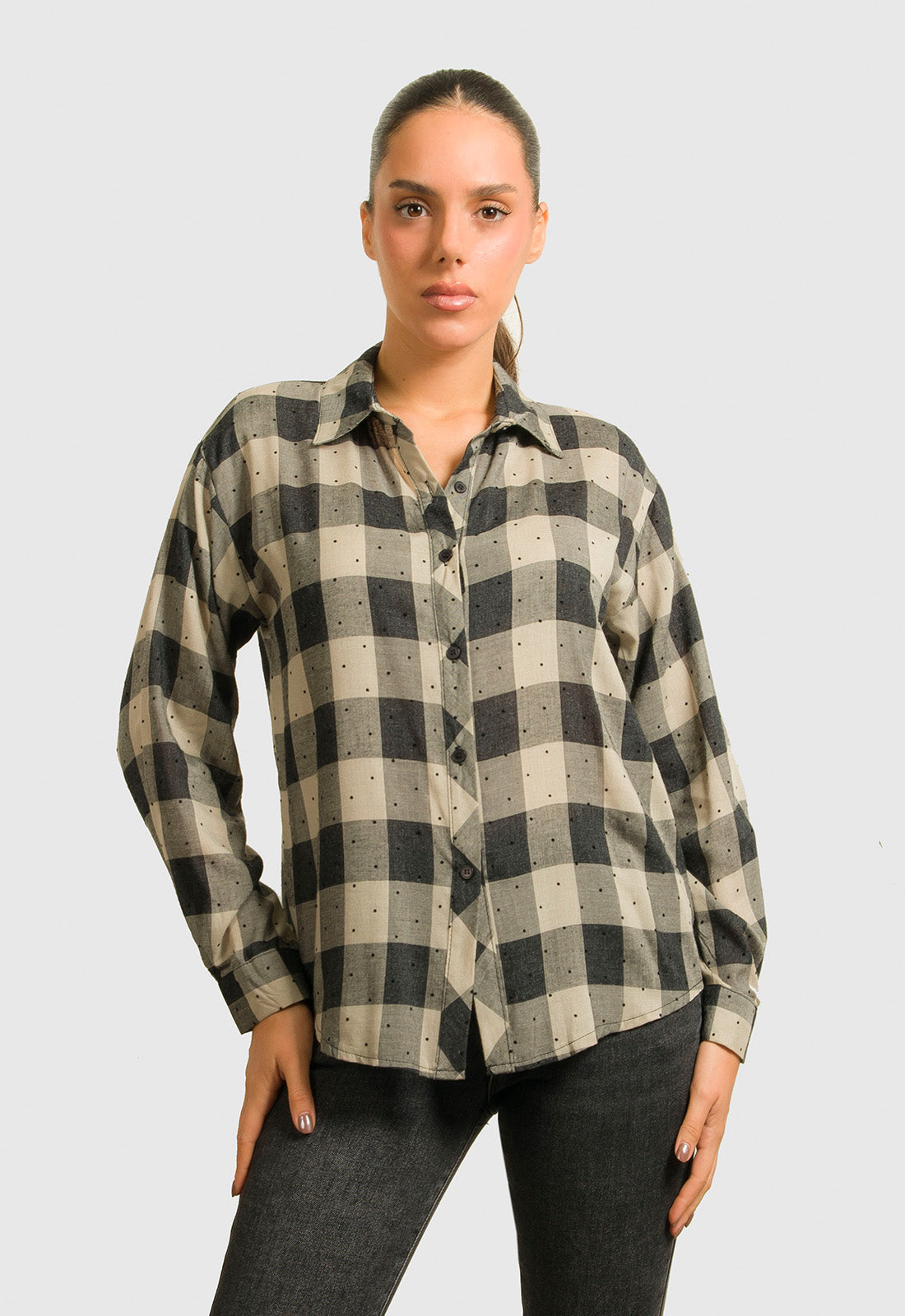 -Πουκάμισο σε σταθερό καρώ βισκόζη ύφασμα με διακριτικά μικρά πουά