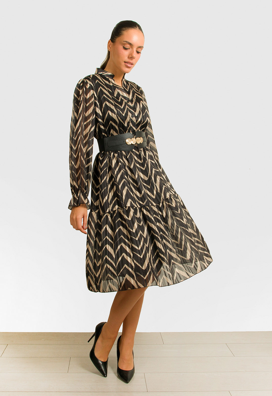 -Φόρεμα μίντι σε σταθερό ύφασμα ζορζέτα