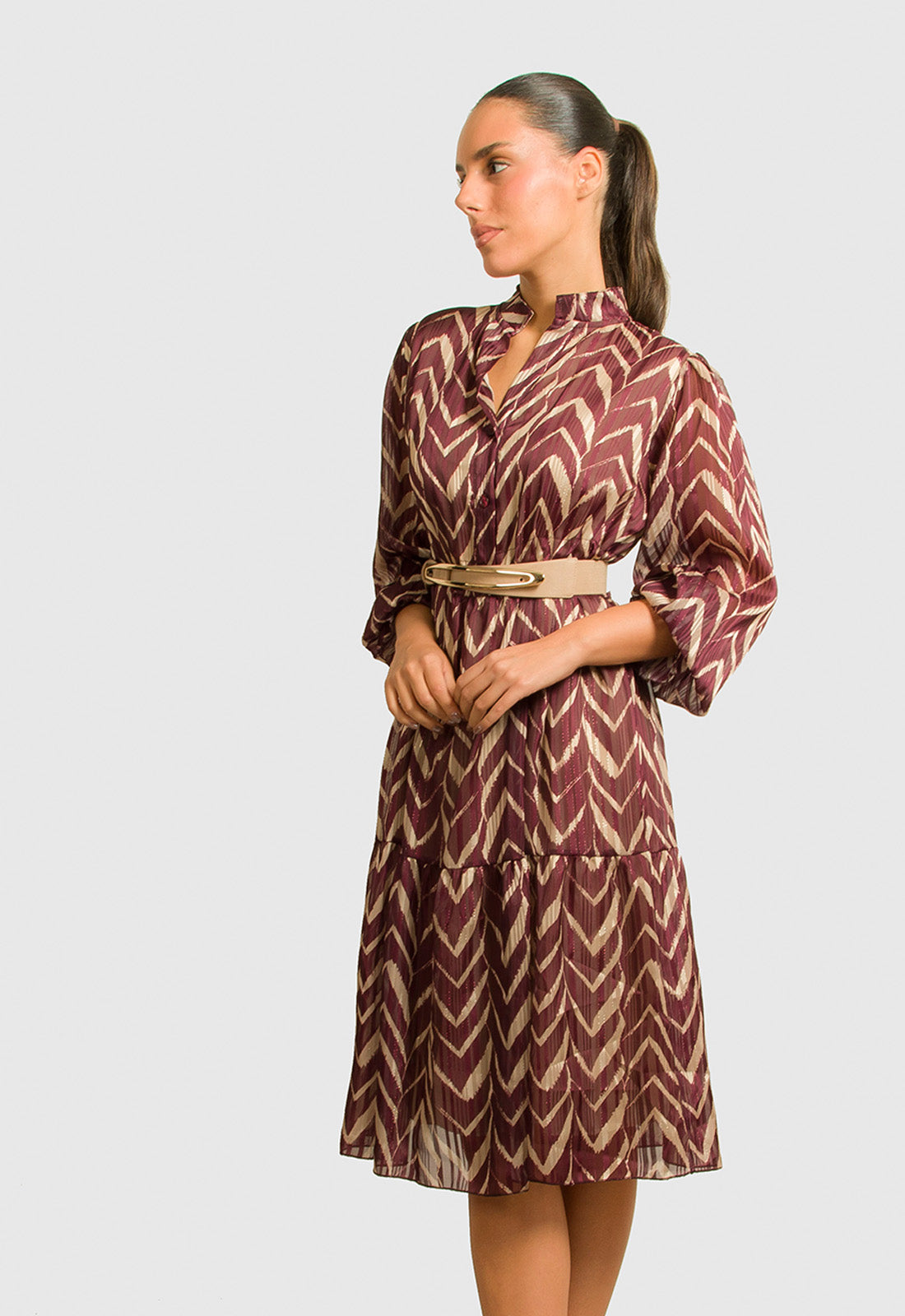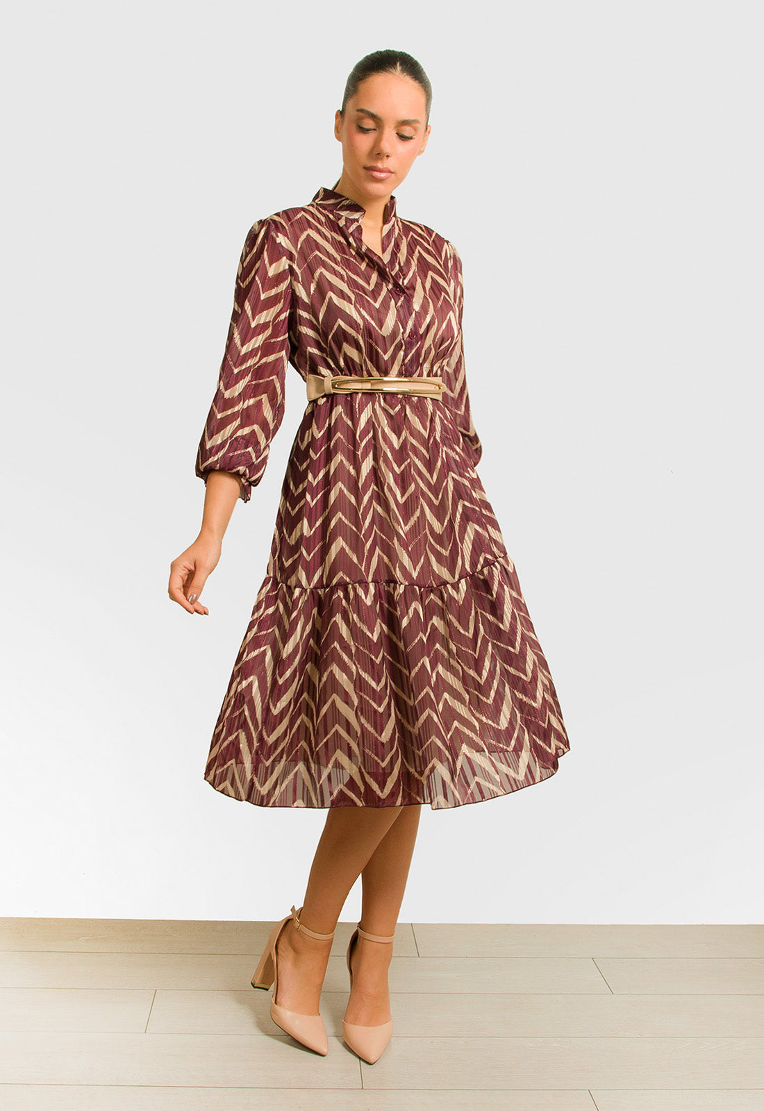 -Φόρεμα μίντι σε σταθερό ύφασμα ζορζέτα