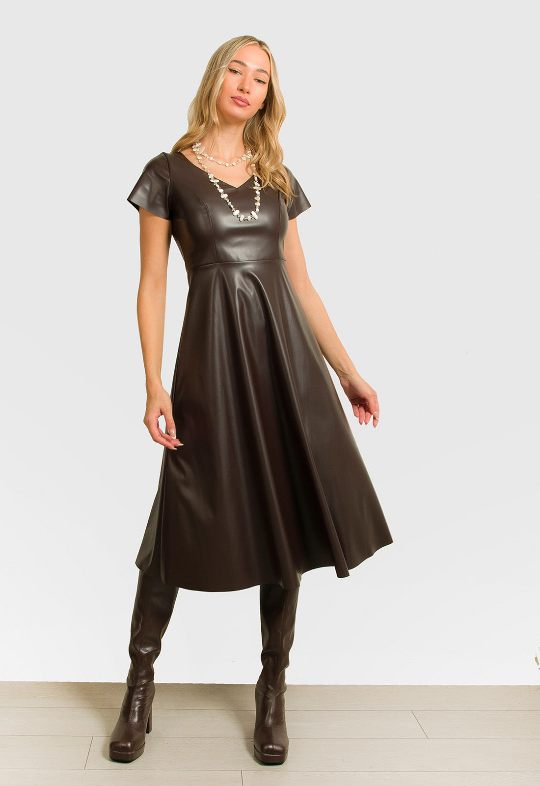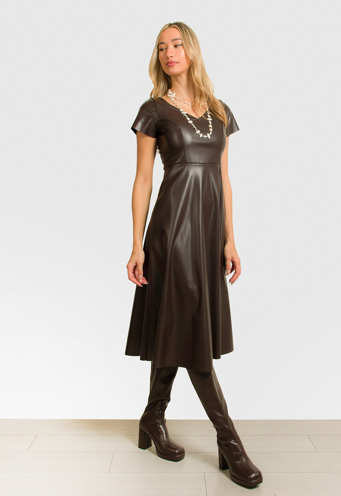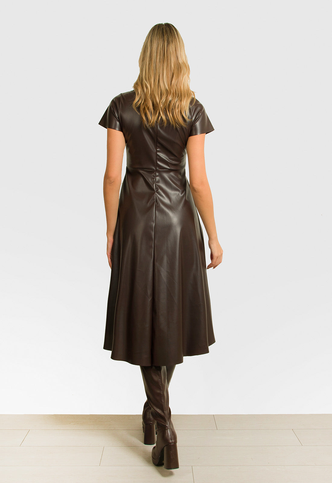 -Φόρεμα MIDI σε ελαστική δερματίνη ματ