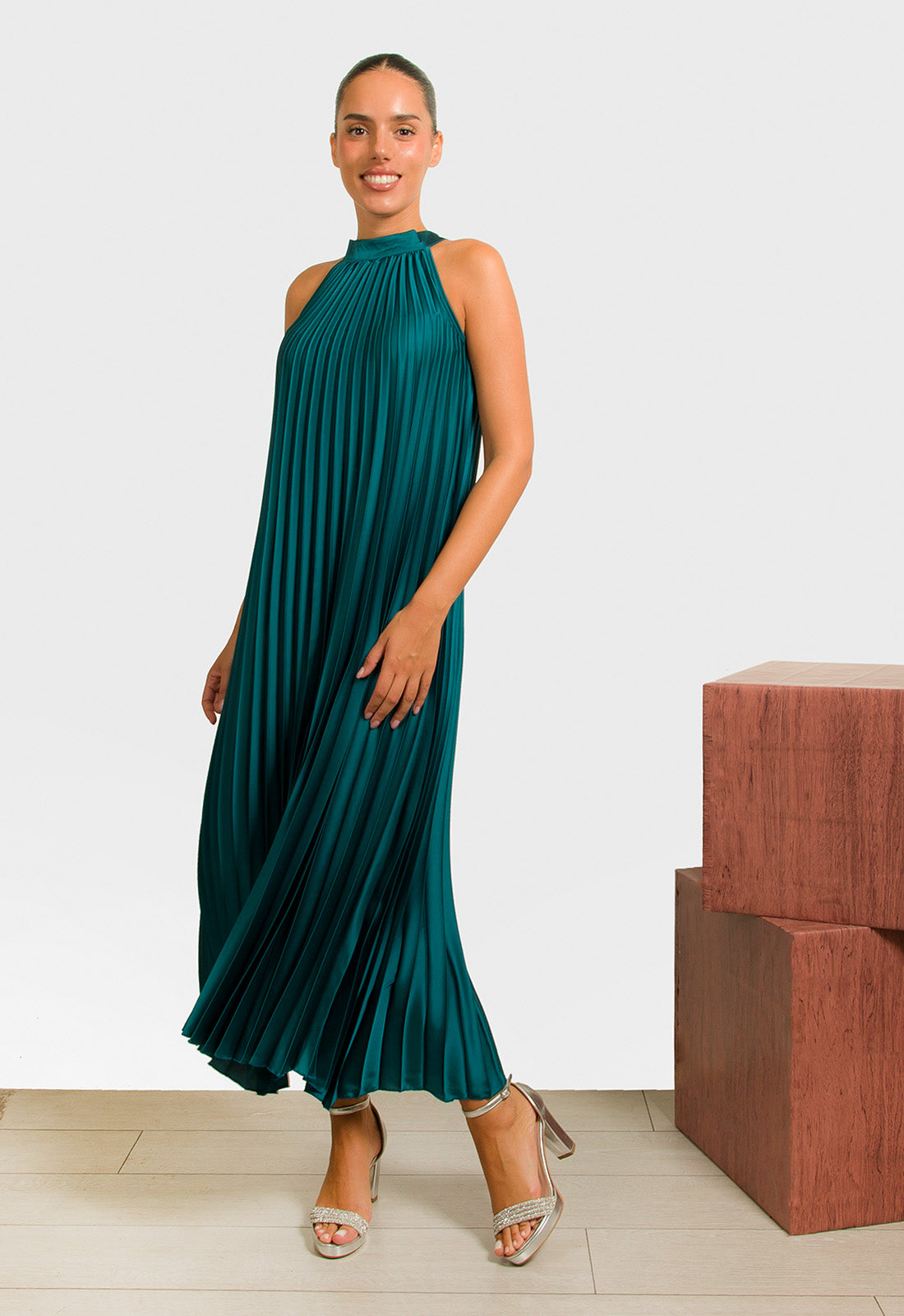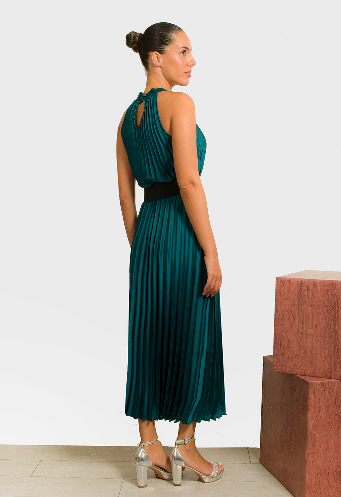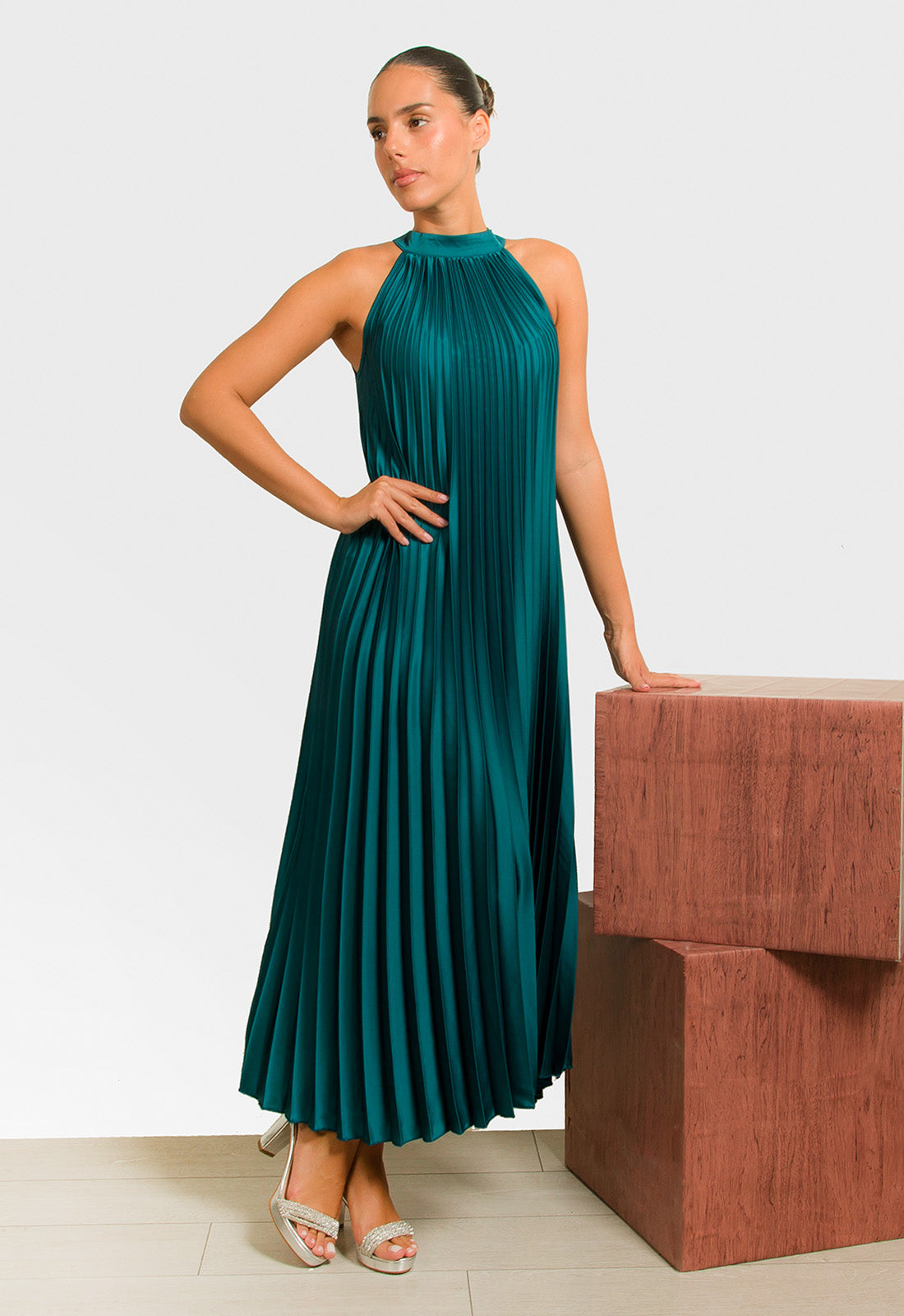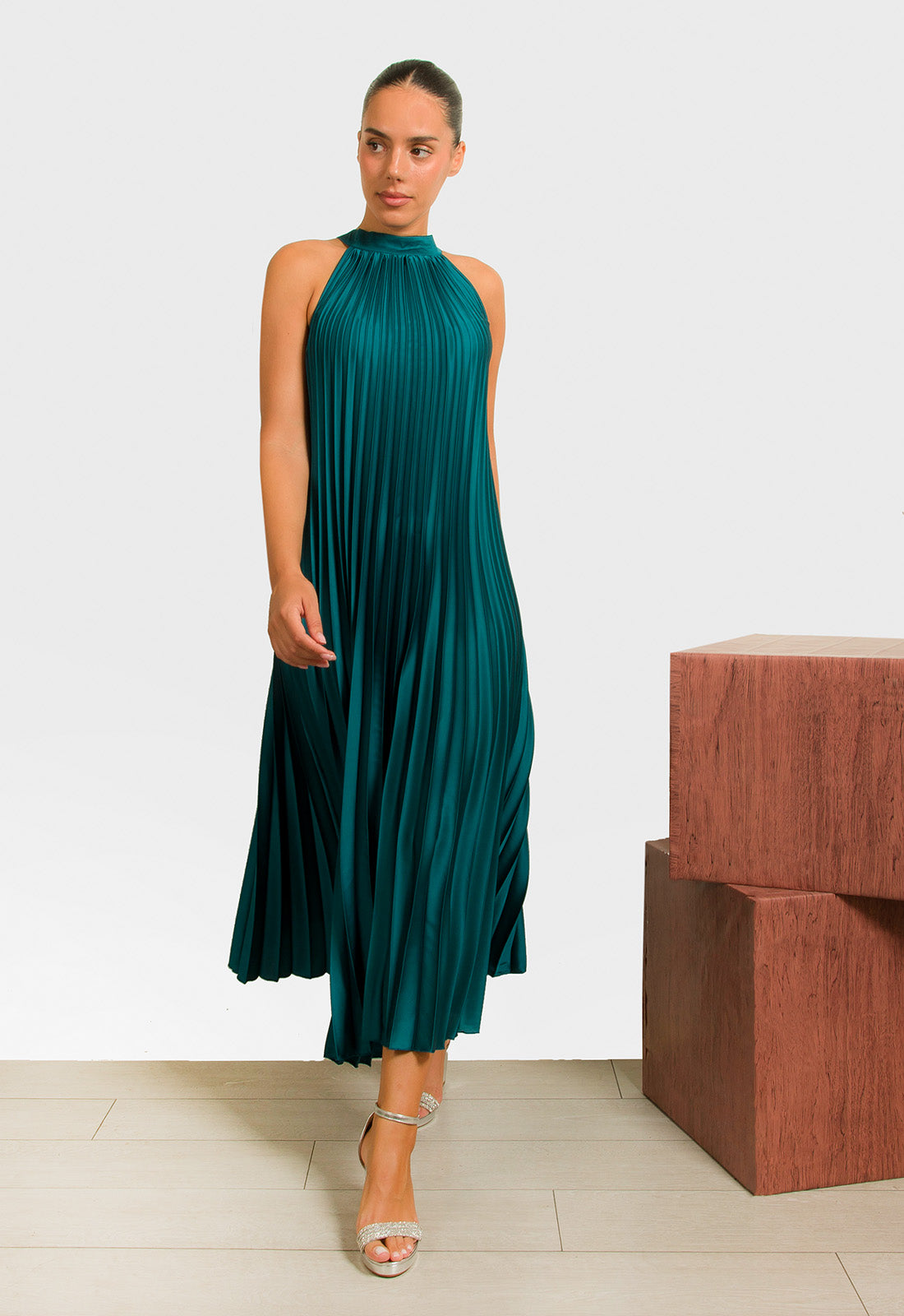 -Φόρεμα σε σταθερό πλισέ ύφασμα σατεν