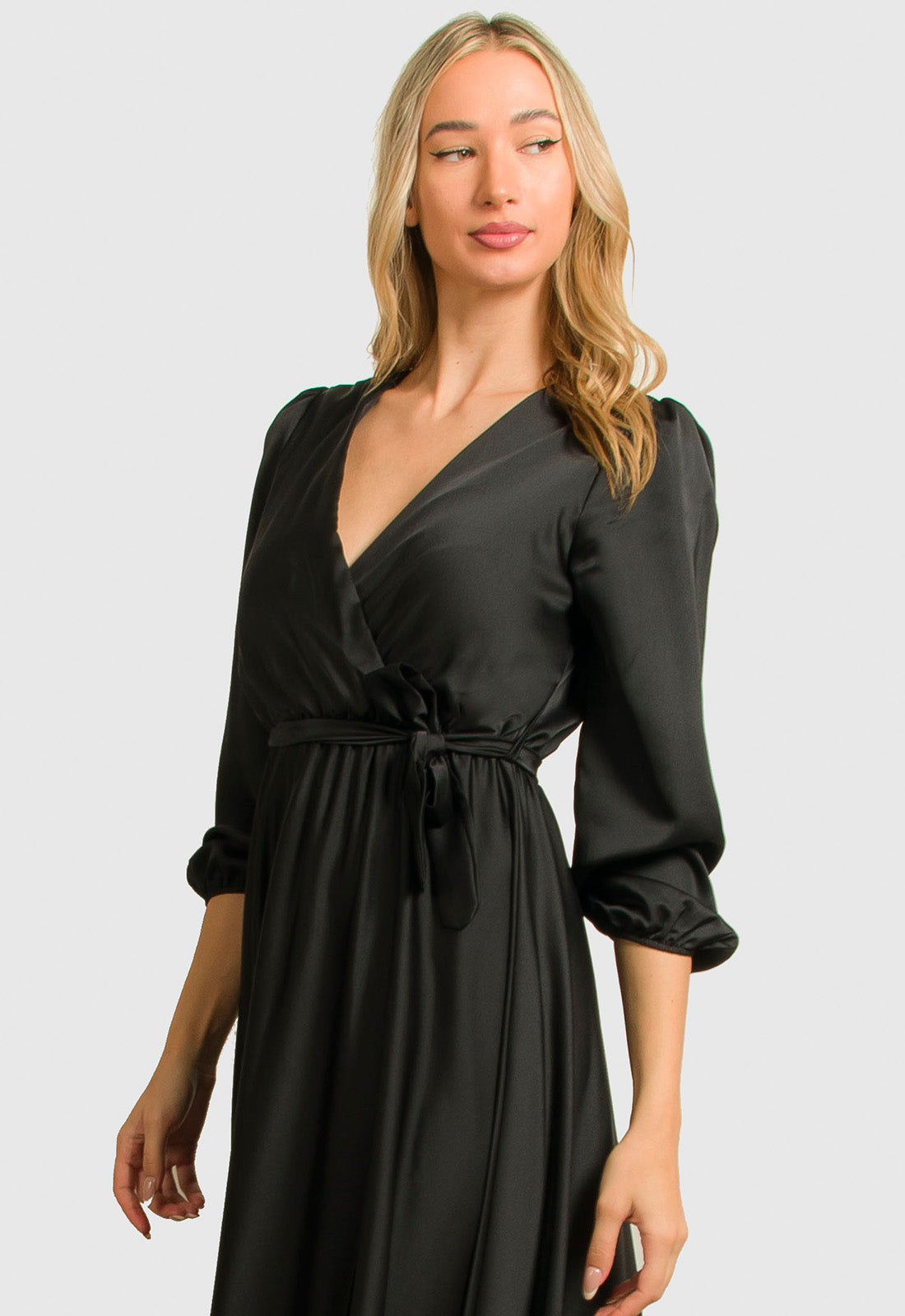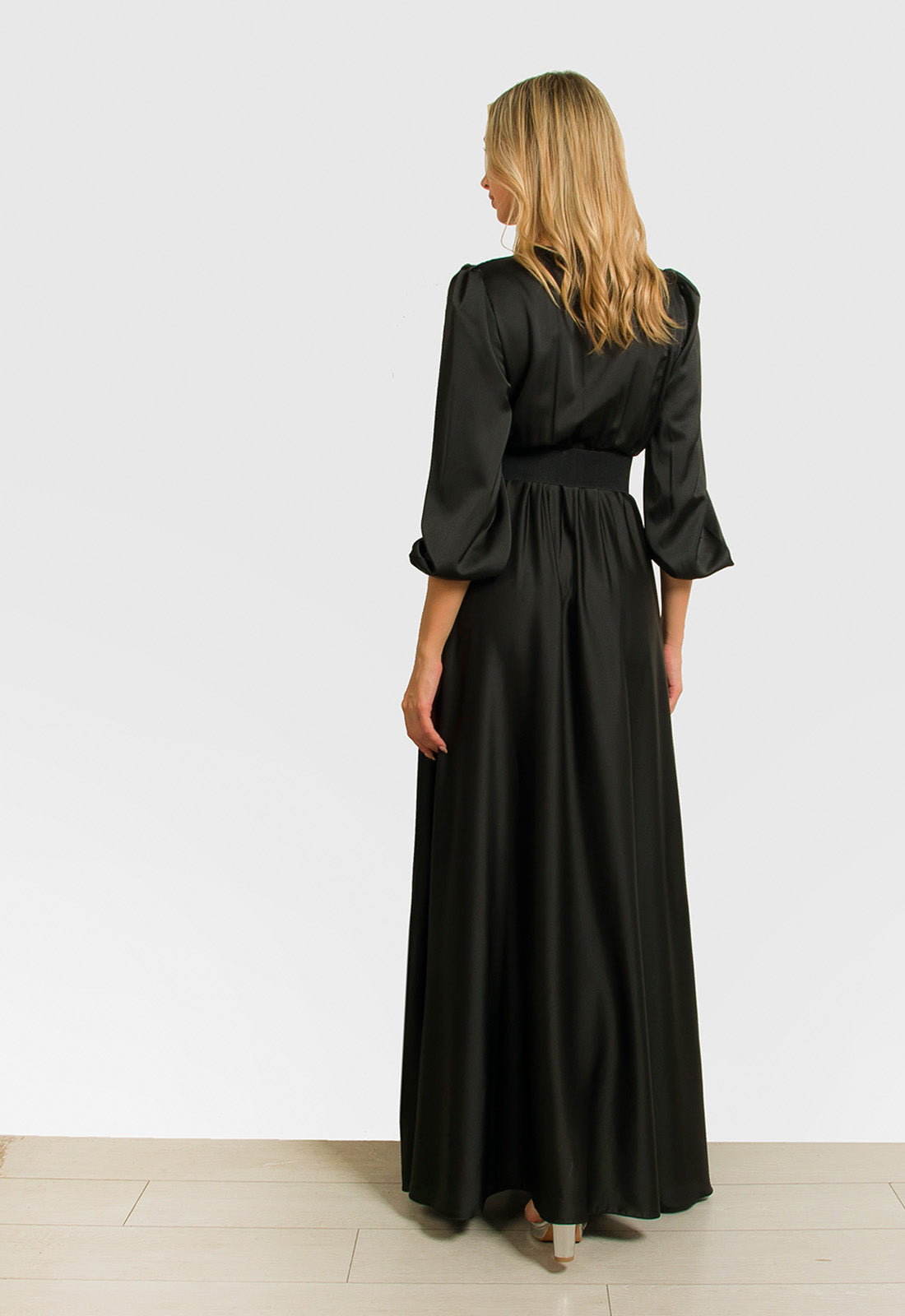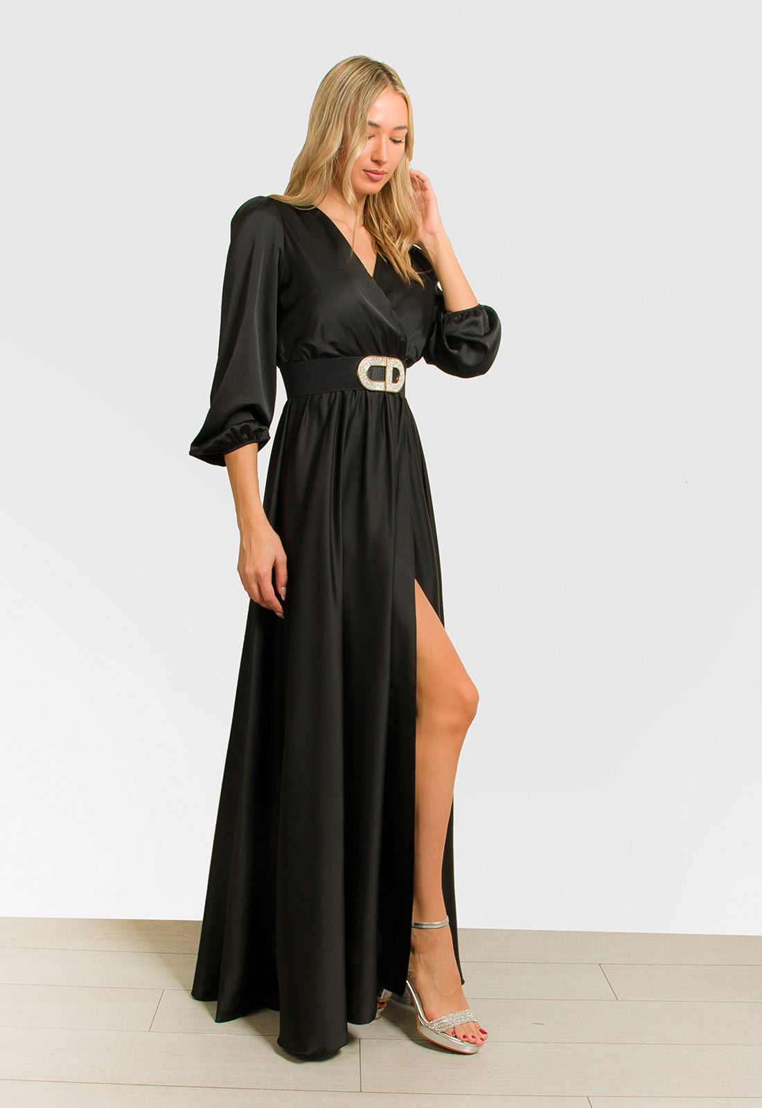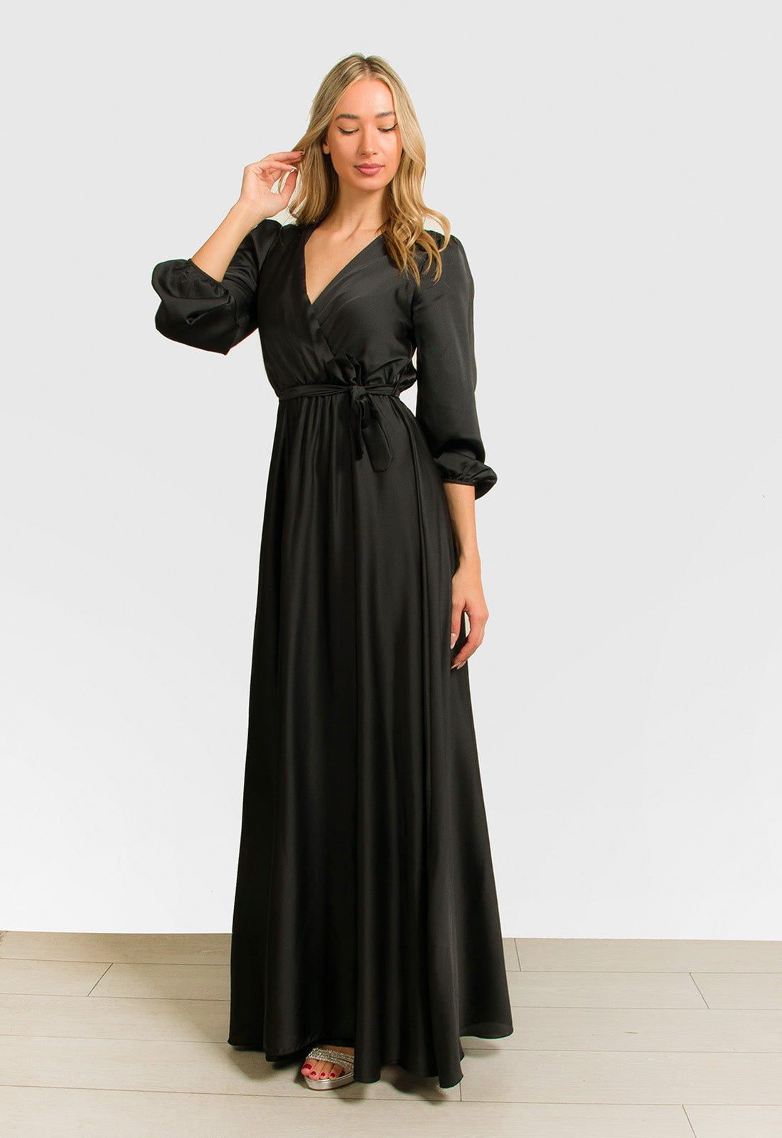 -Φόρεμα maxi σε σταθερό σατέν ύφασμα