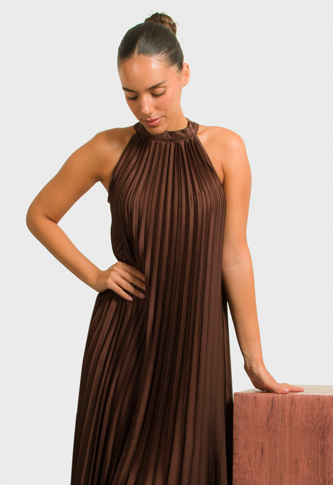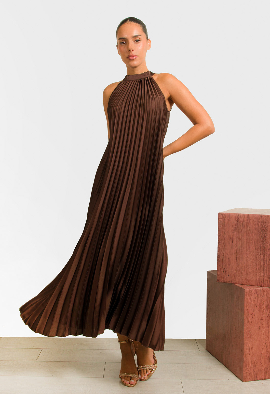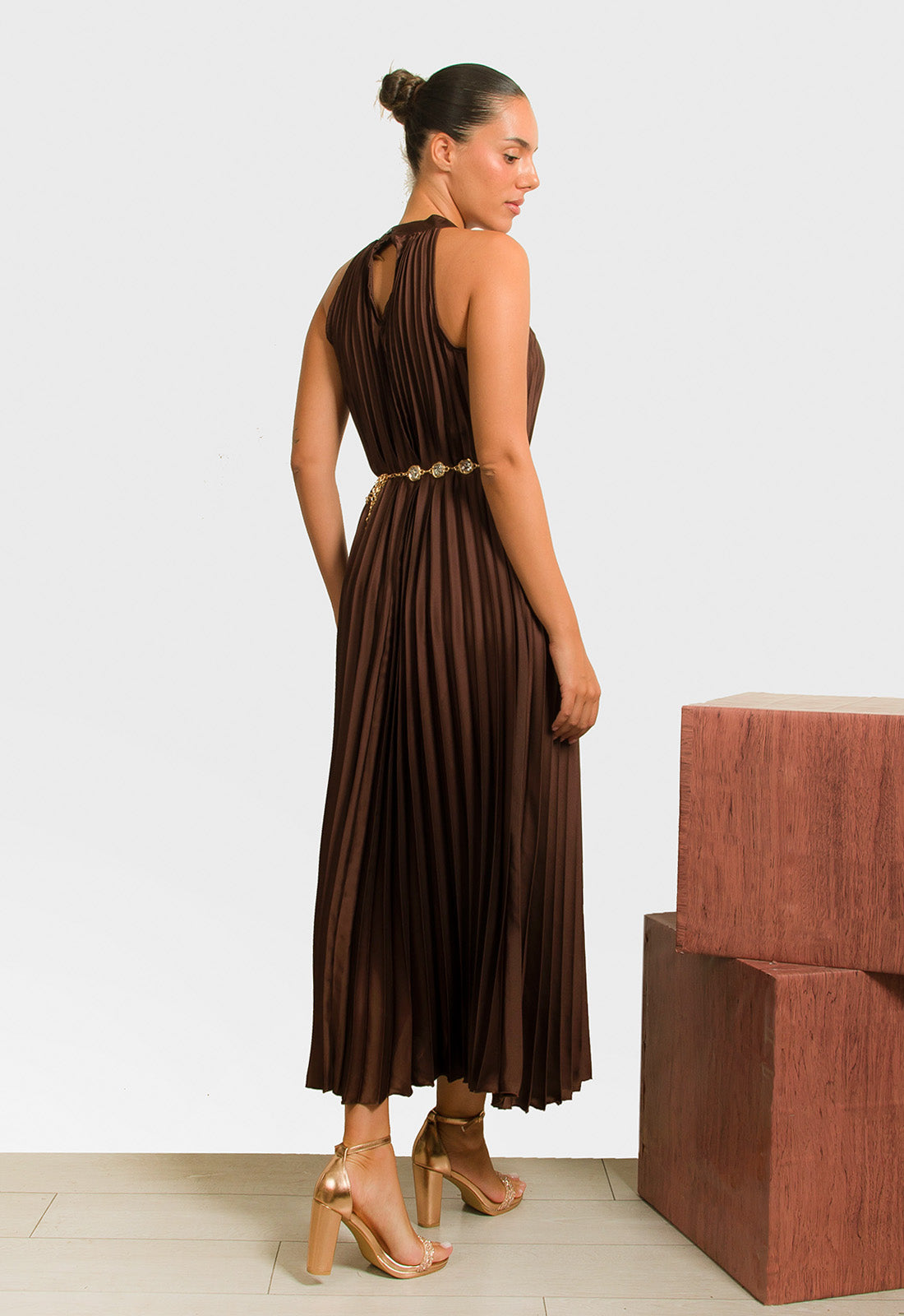 -Φόρεμα σε σταθερό πλισέ ύφασμα σατεν