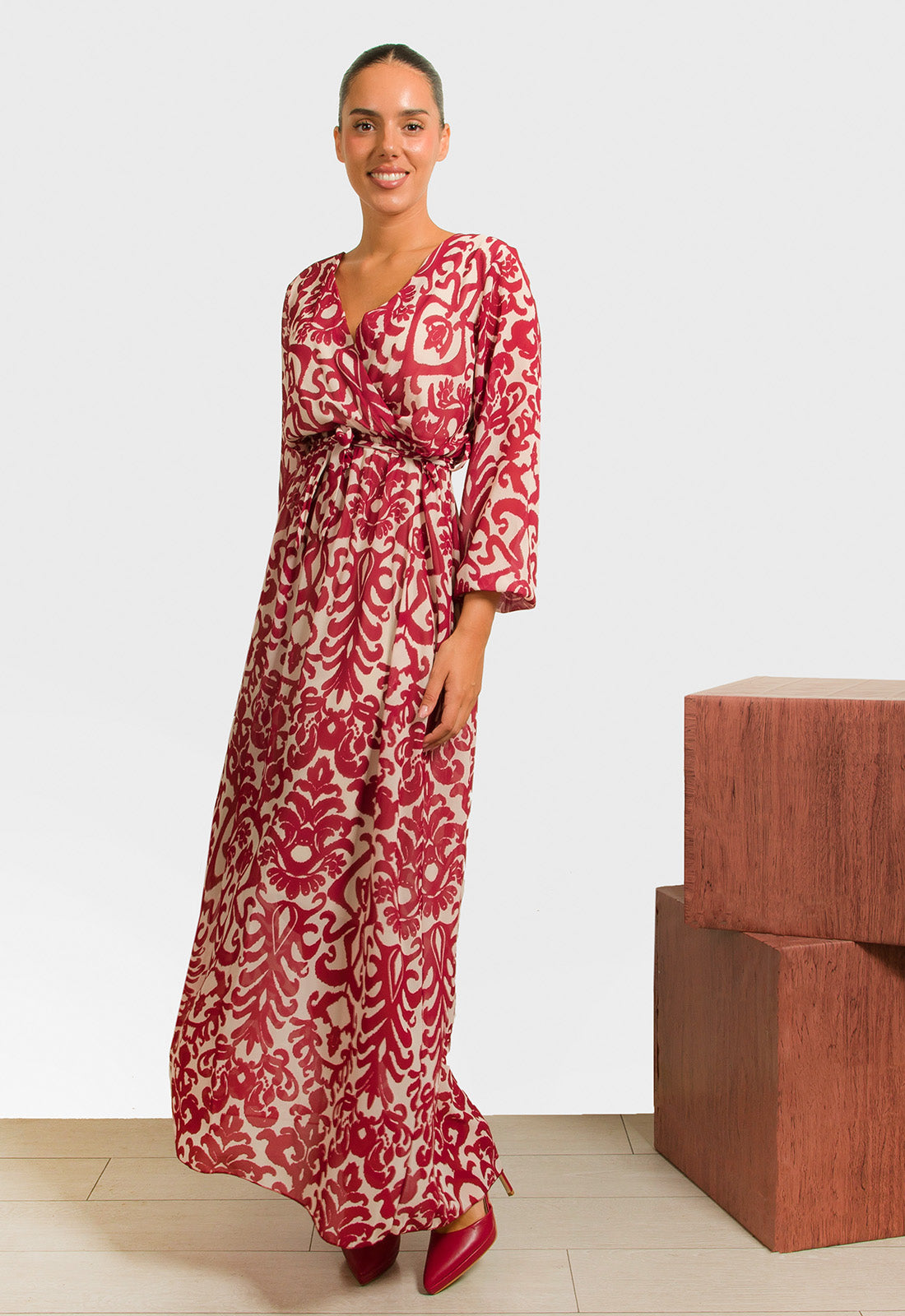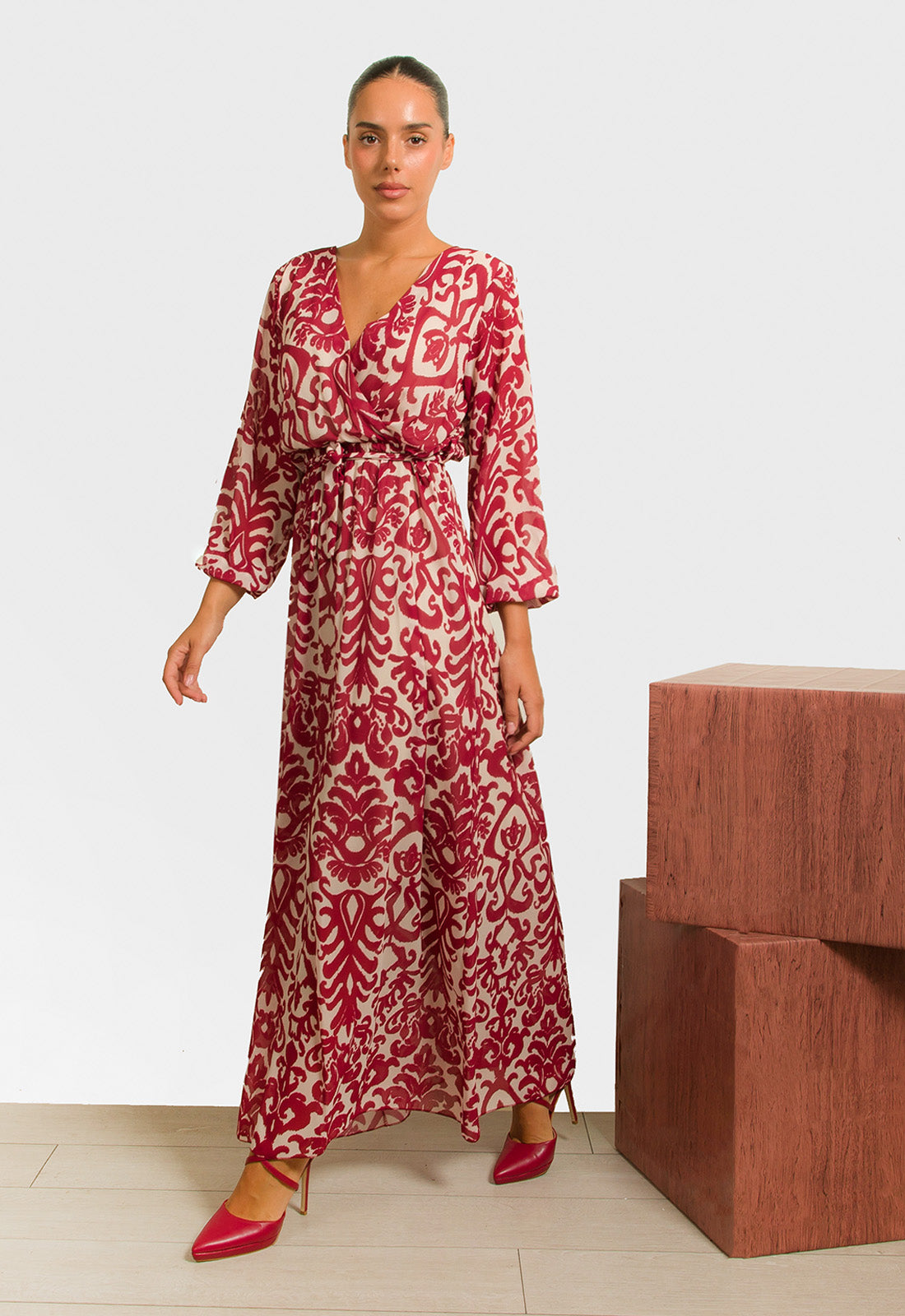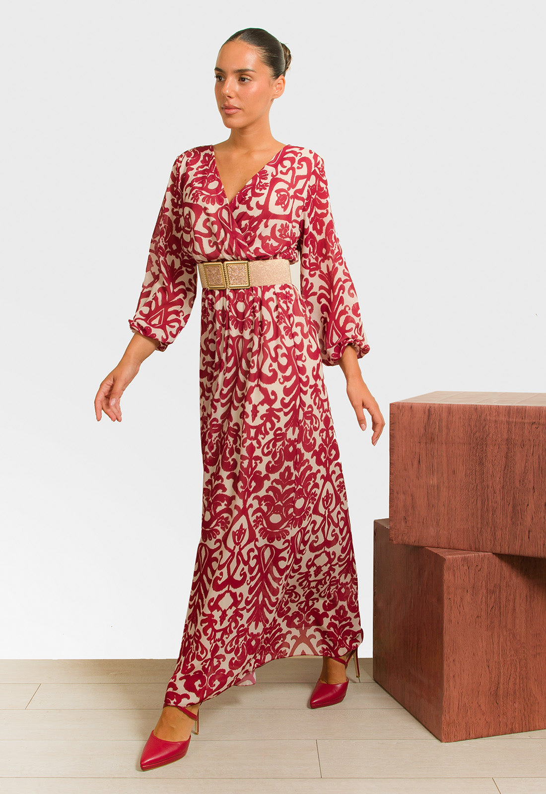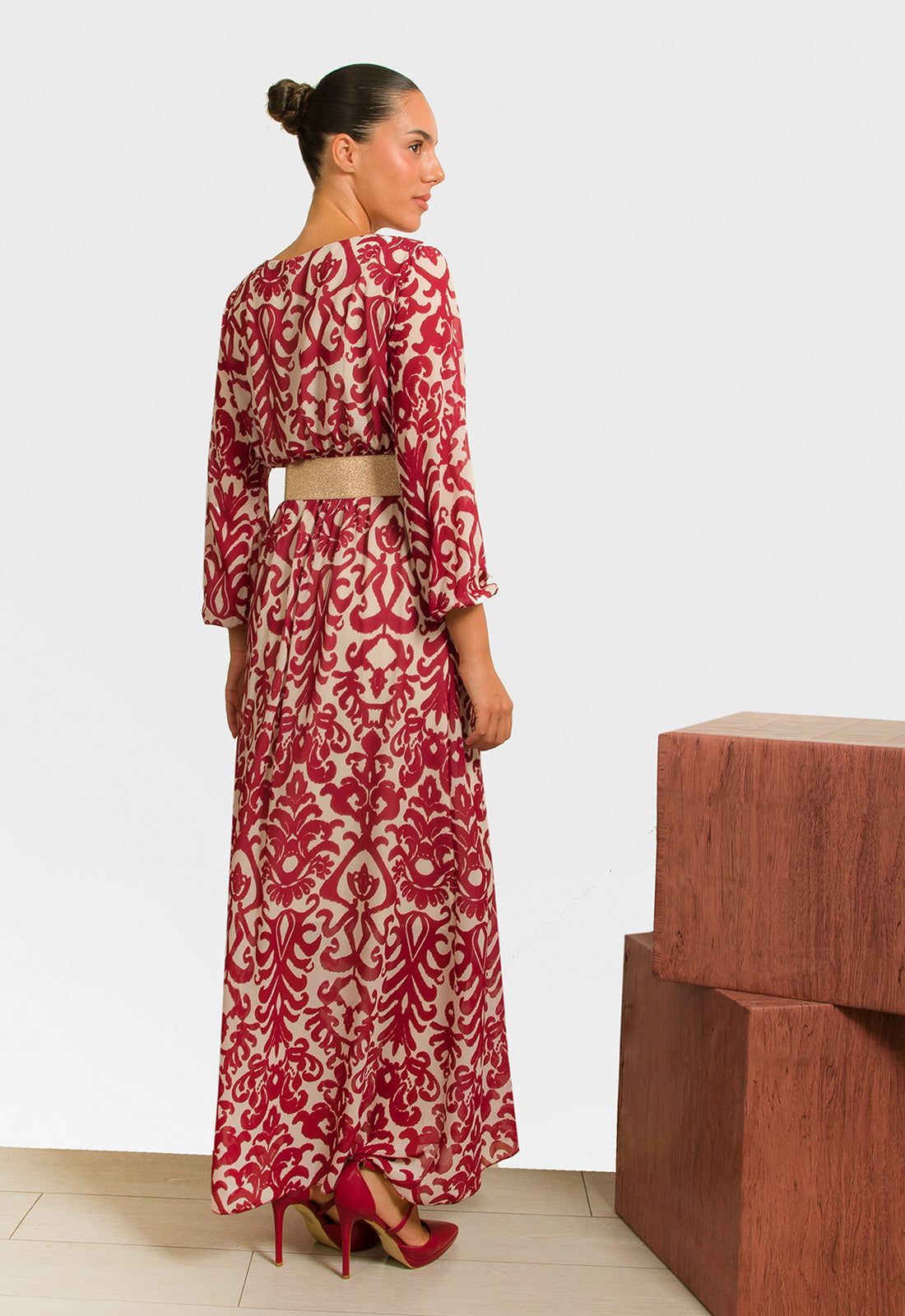 -Φόρεμα maxi σε σταθερό εμπριμέ ύφασμα ζορζέτα