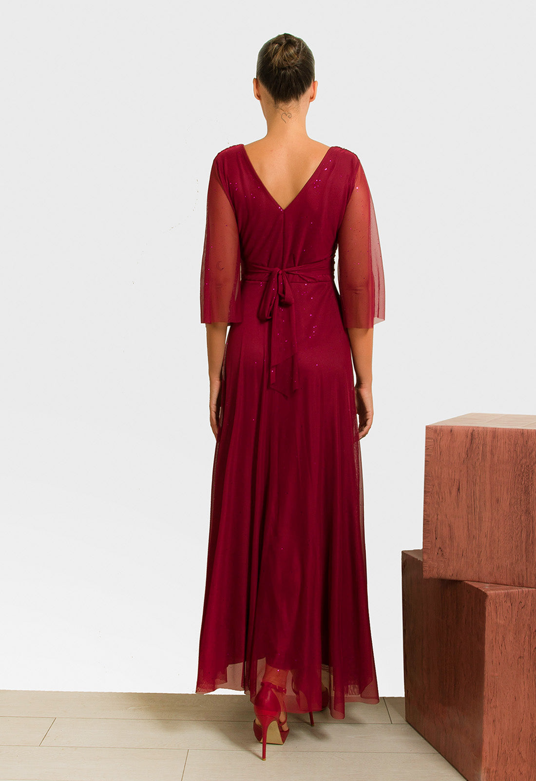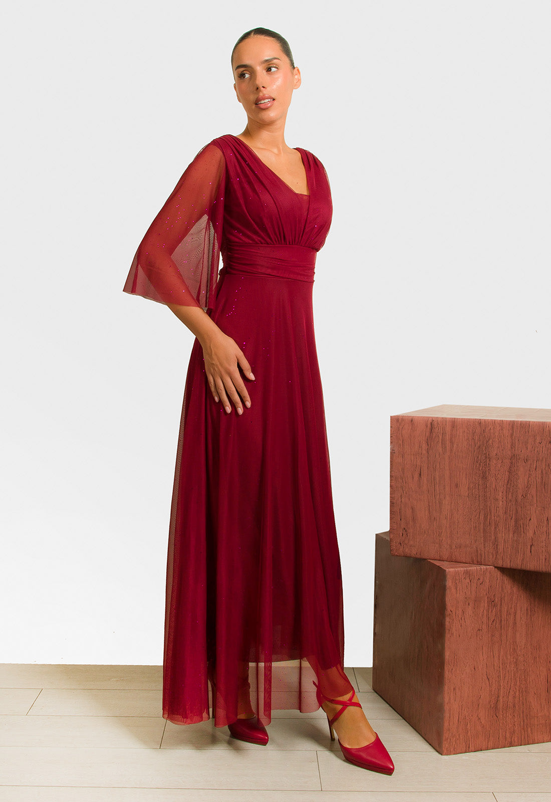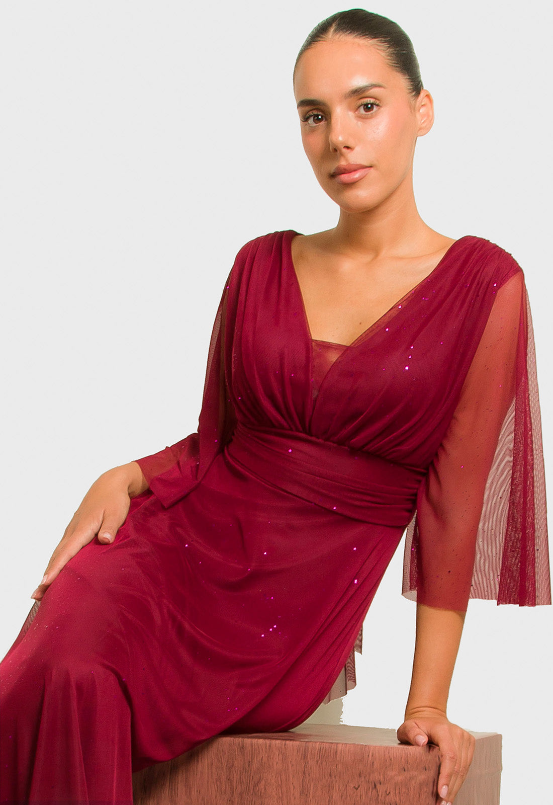 -Φόρεμα σε ελαστικό ύφασμα δίχτυ με διακριτικές μικρές παγέτες