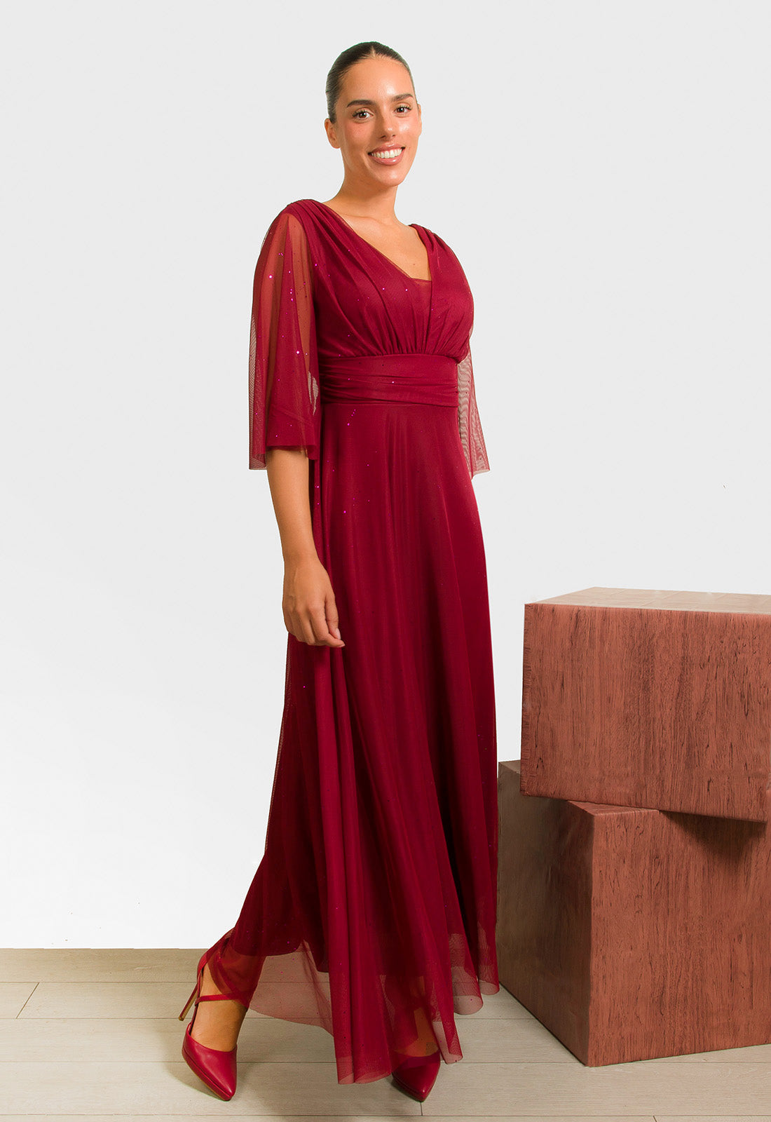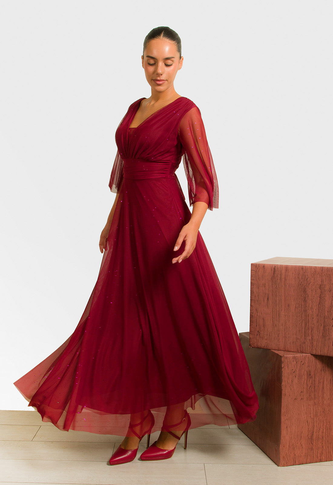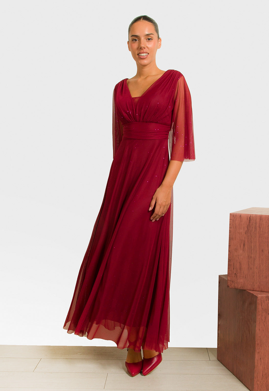 -Φόρεμα σε ελαστικό ύφασμα δίχτυ με διακριτικές μικρές παγέτες