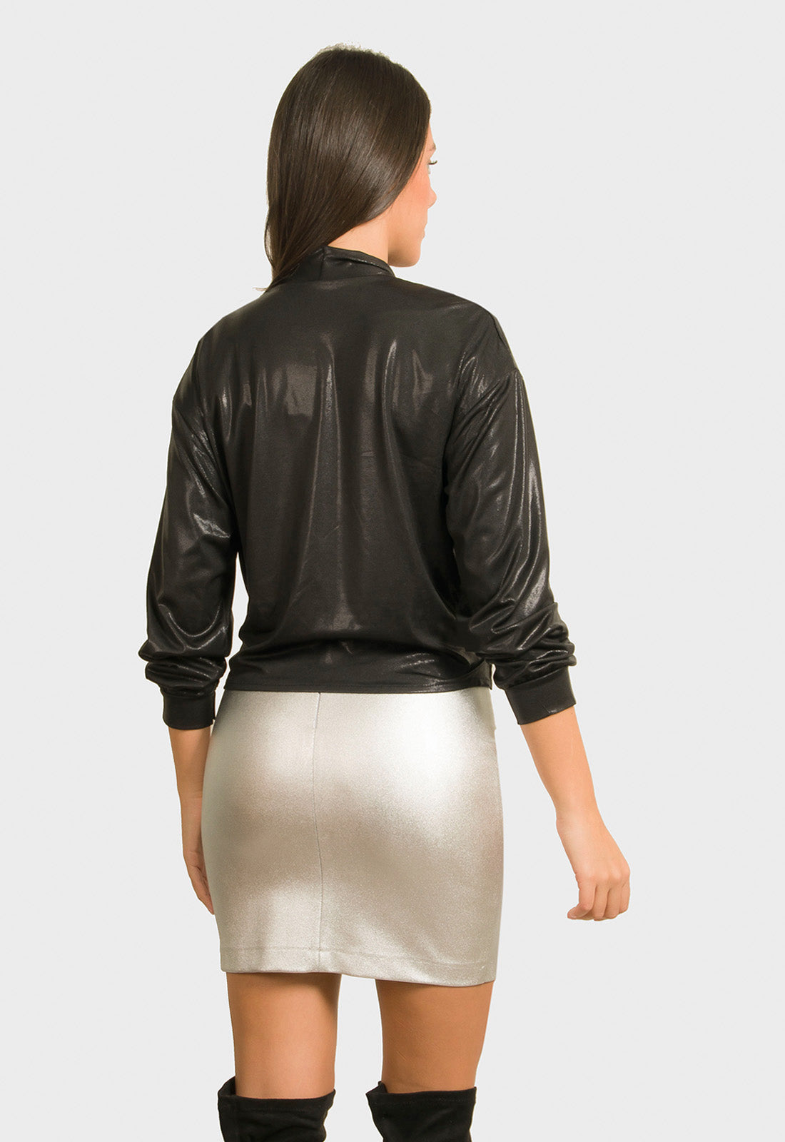 -Ψηλόμεση, μεταλλιζέ φούστα μίνι.