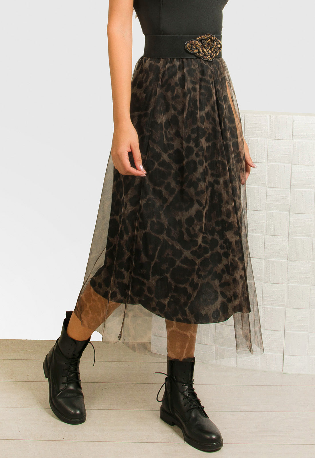 -Φούστα μίντι σε ελαστικό δίχτυ ύφασμα animal print