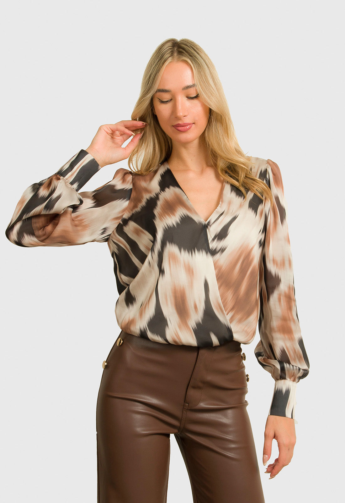-Μπλούζα μακρυμάνικη, εμπριμέ, κρουαζέ.