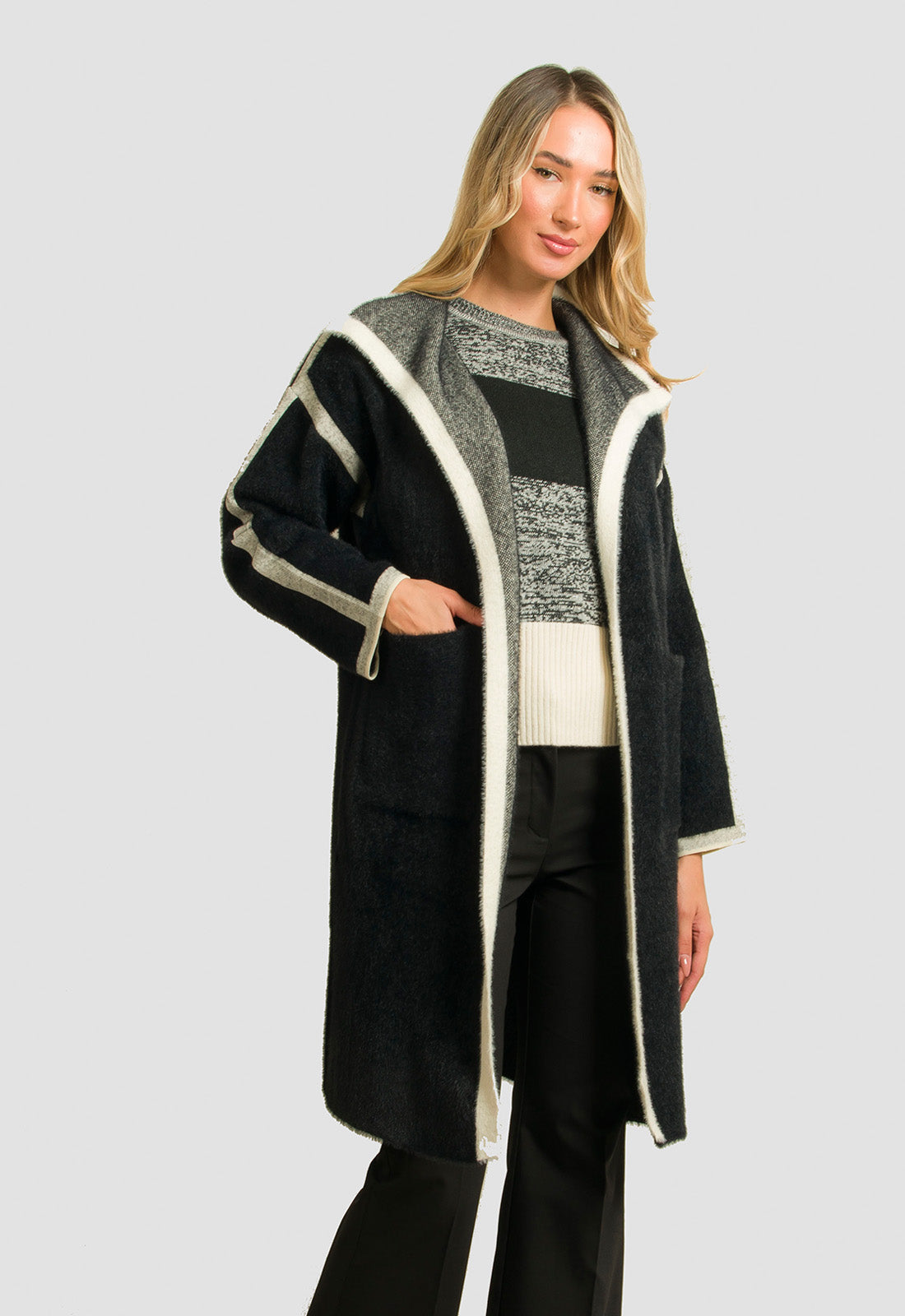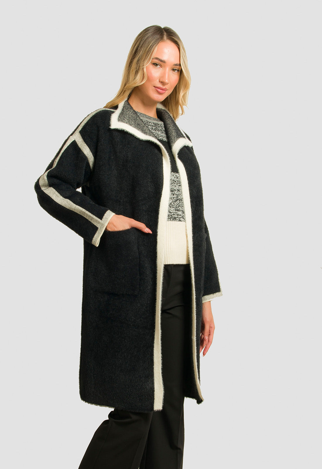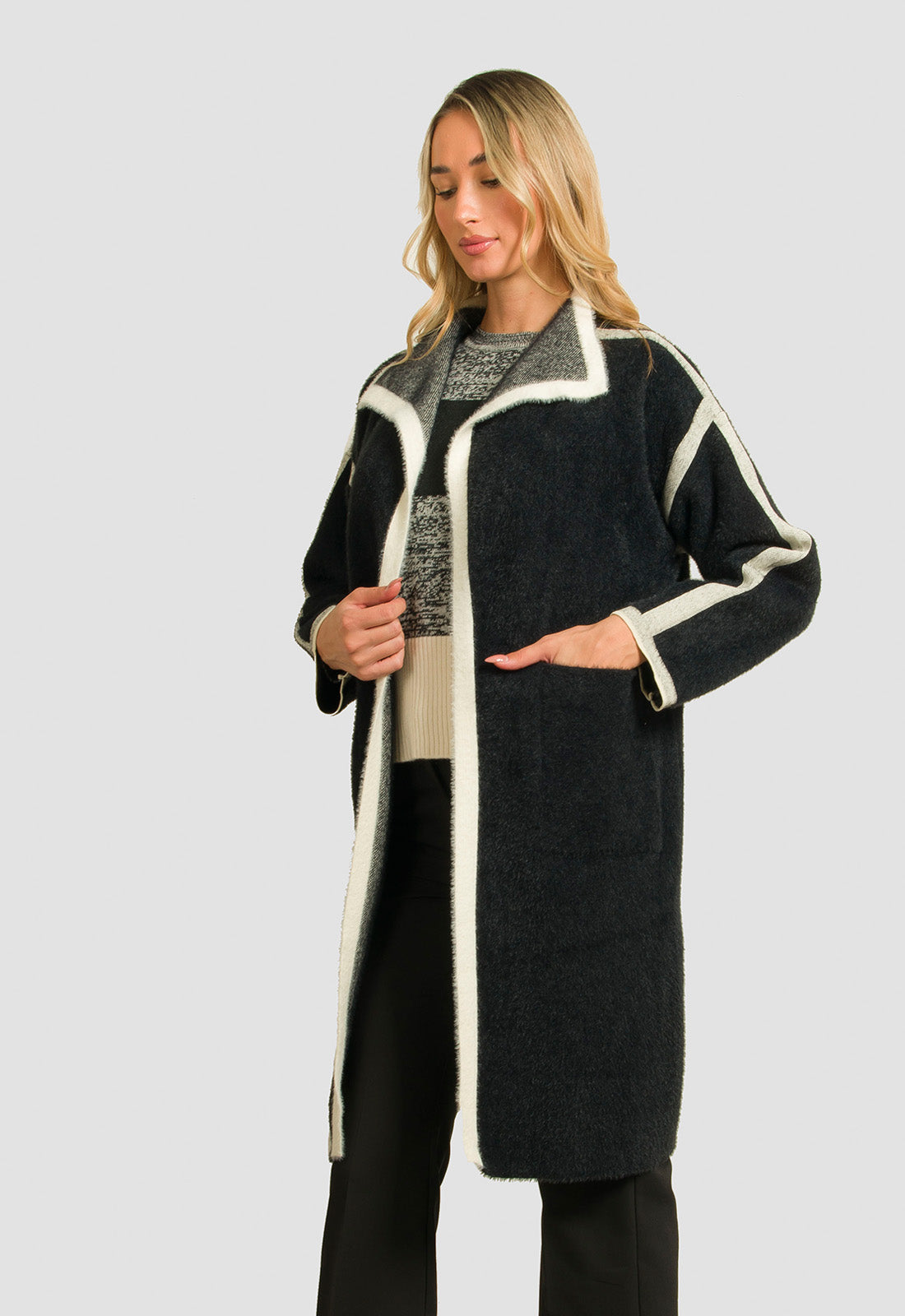 -Παλτό σε πλεκτό χοντρό ύφασμα χνουδωτό
