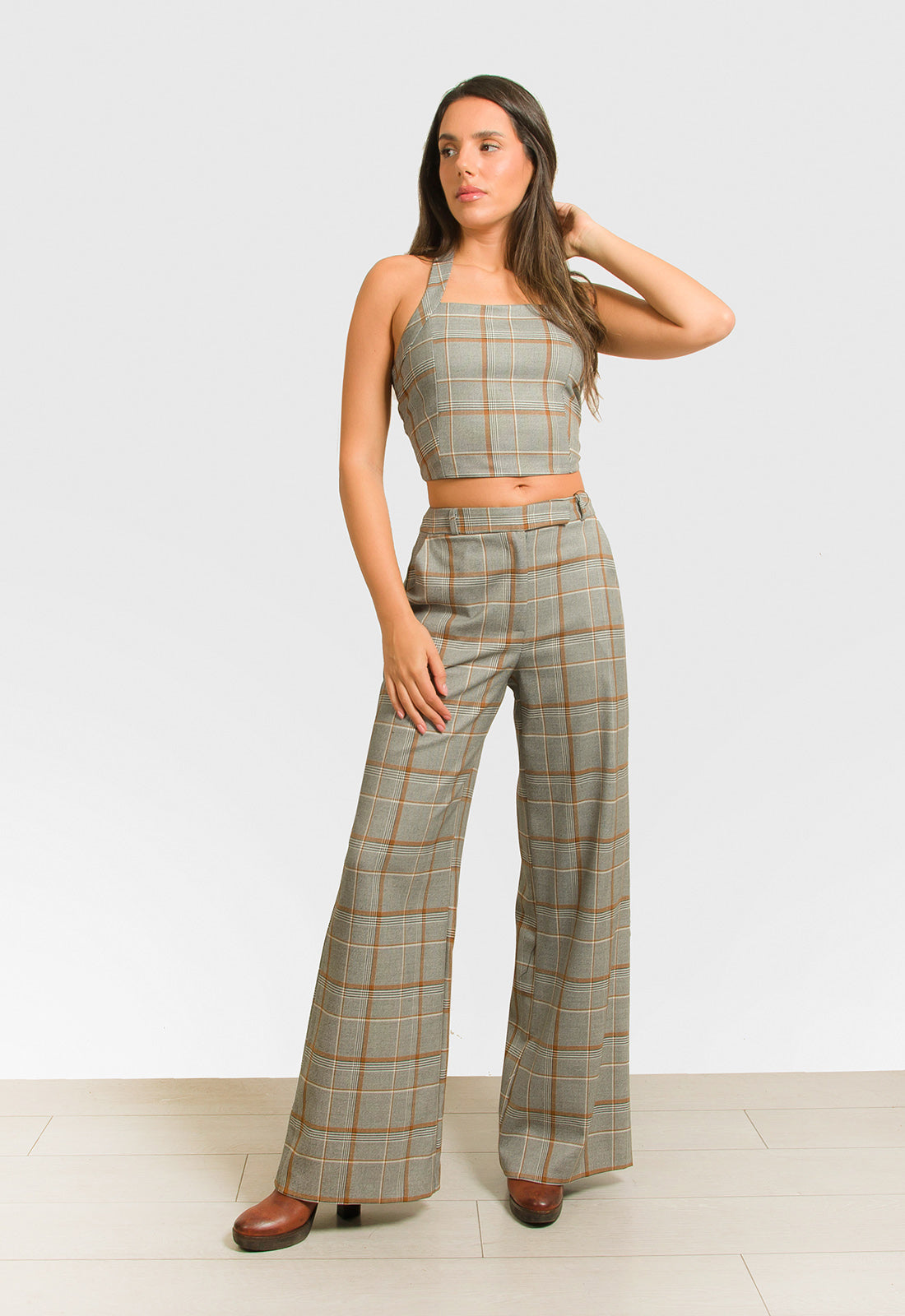 -Παντελόνα σε σταθερό καρώ ύφασμα