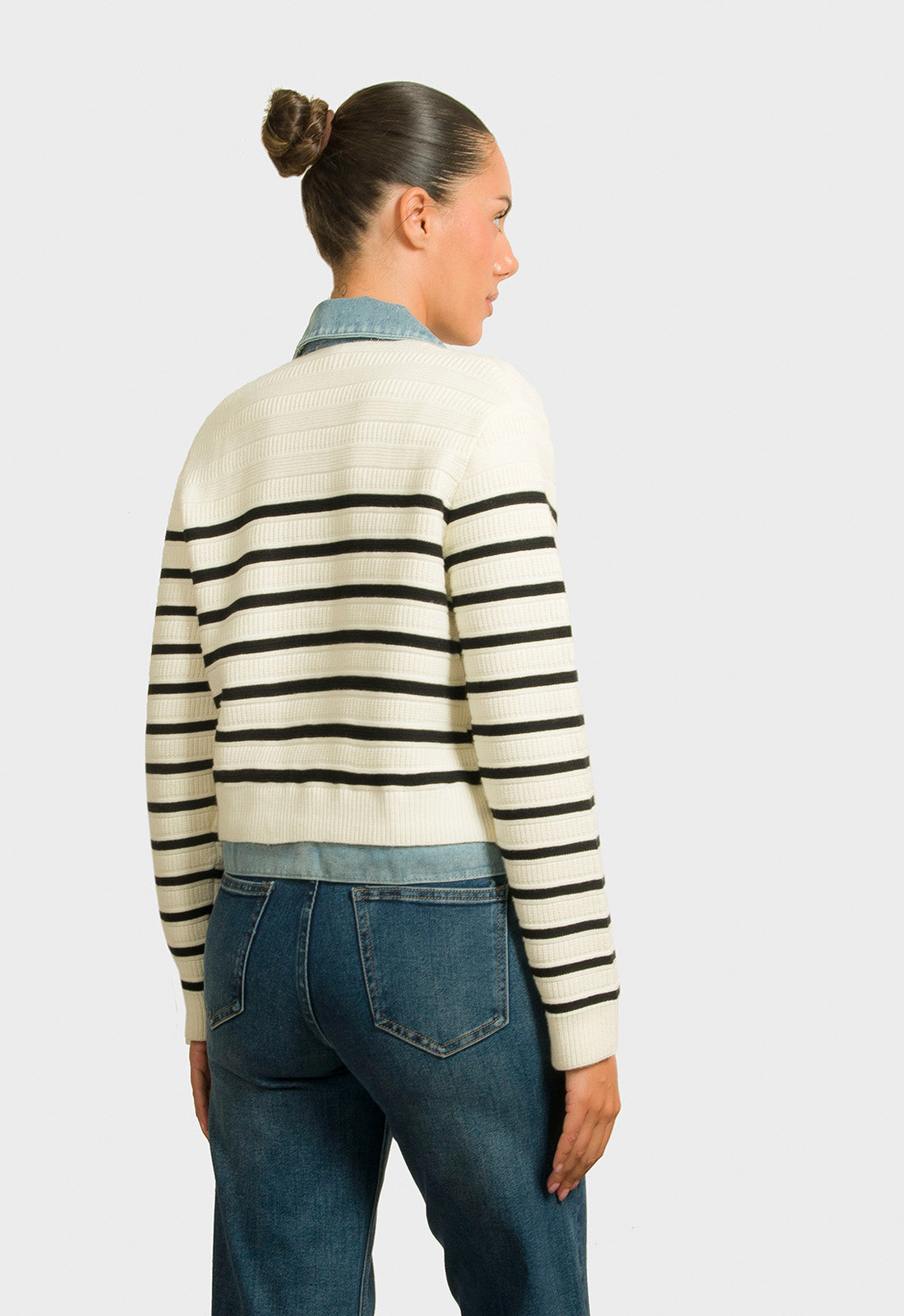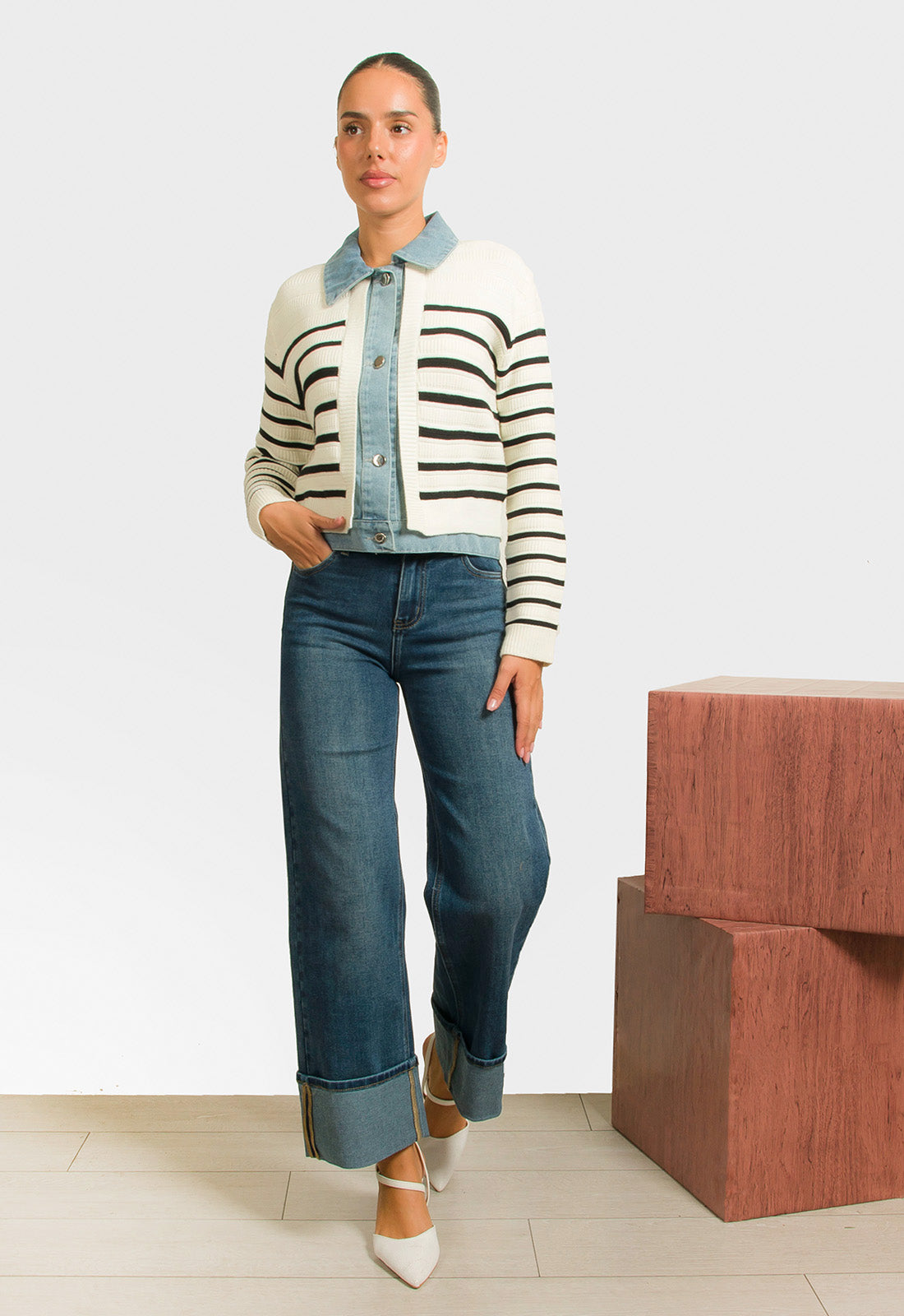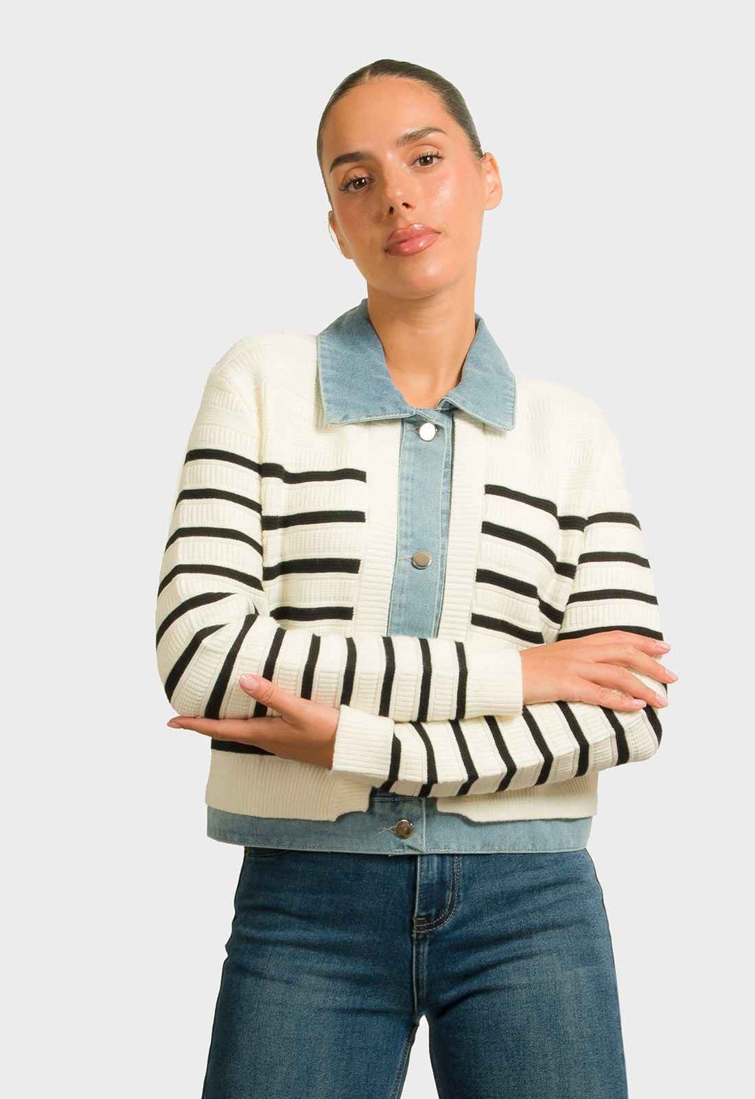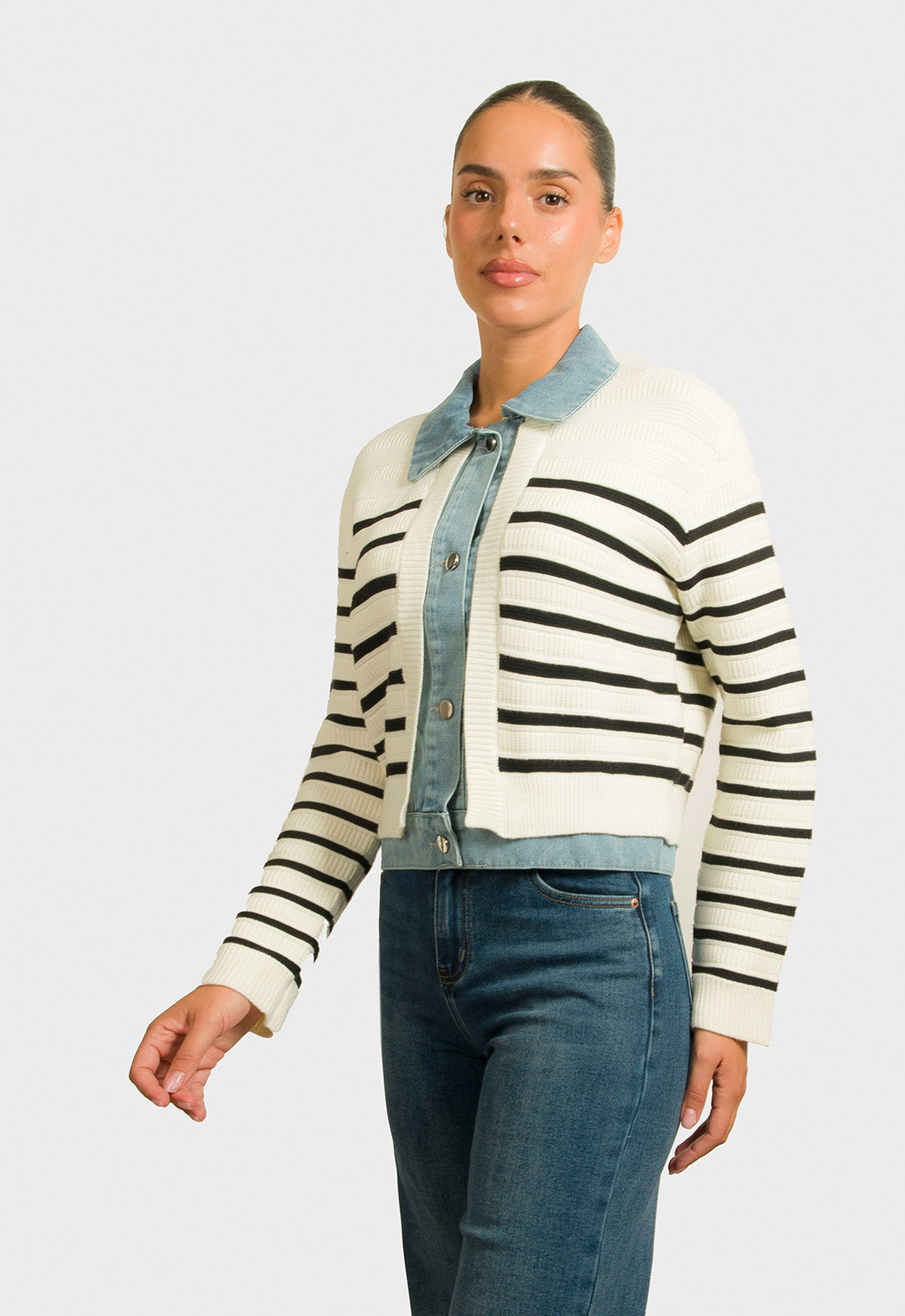 -Ζακέτα σε πλεκτό ριγέ ύφασμα με ενσωματωμένα τελειώματα τζίν μπουφάν