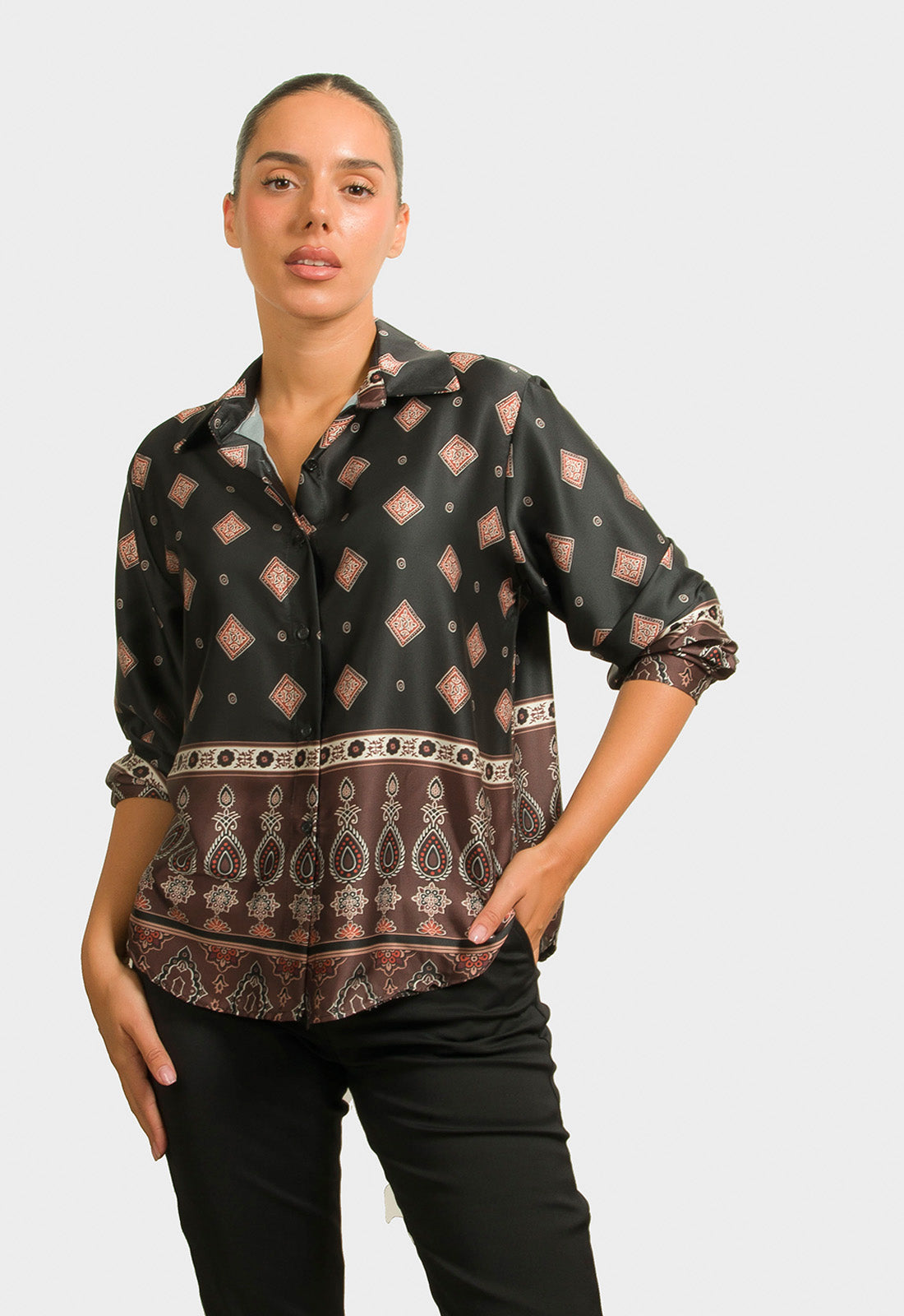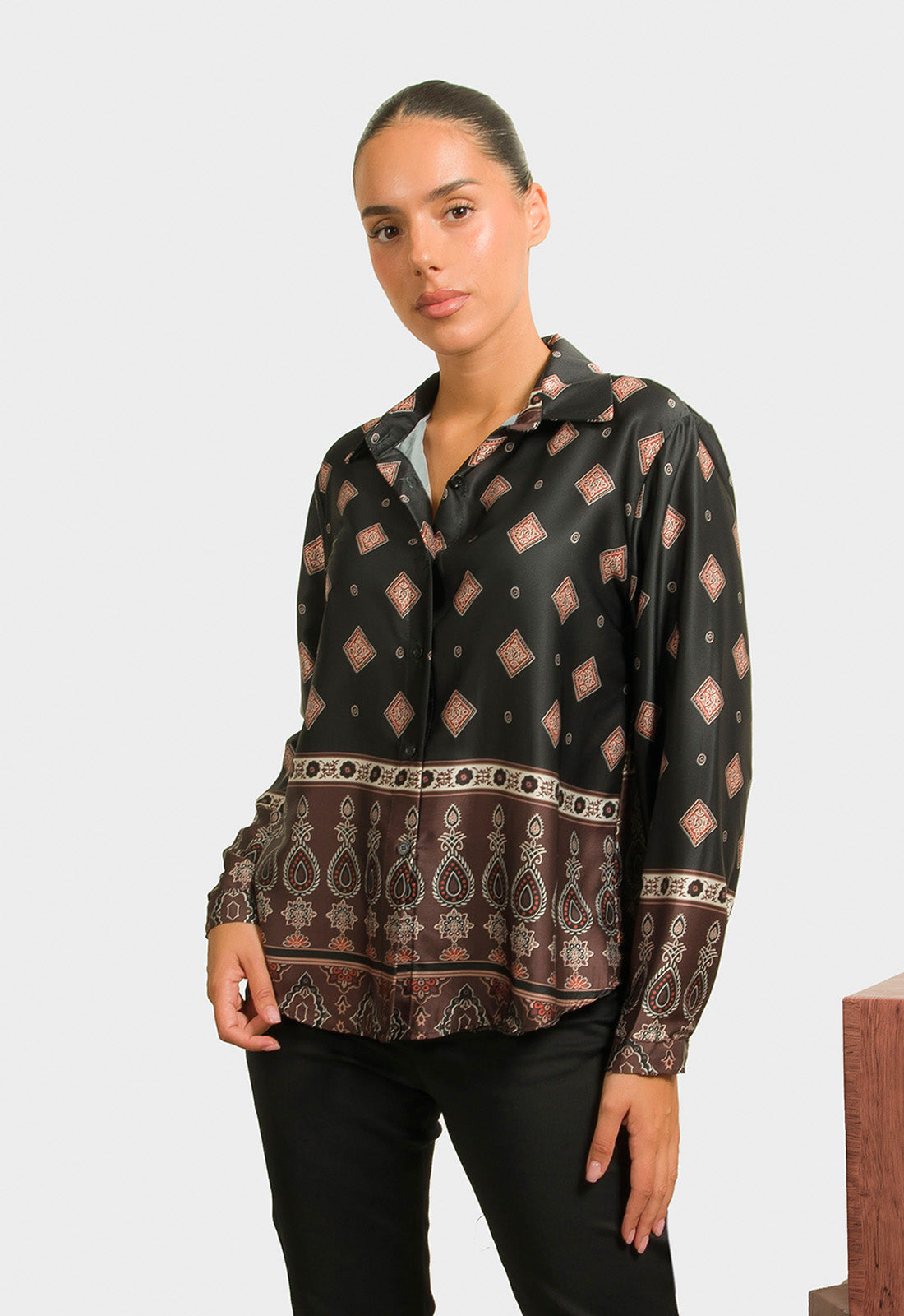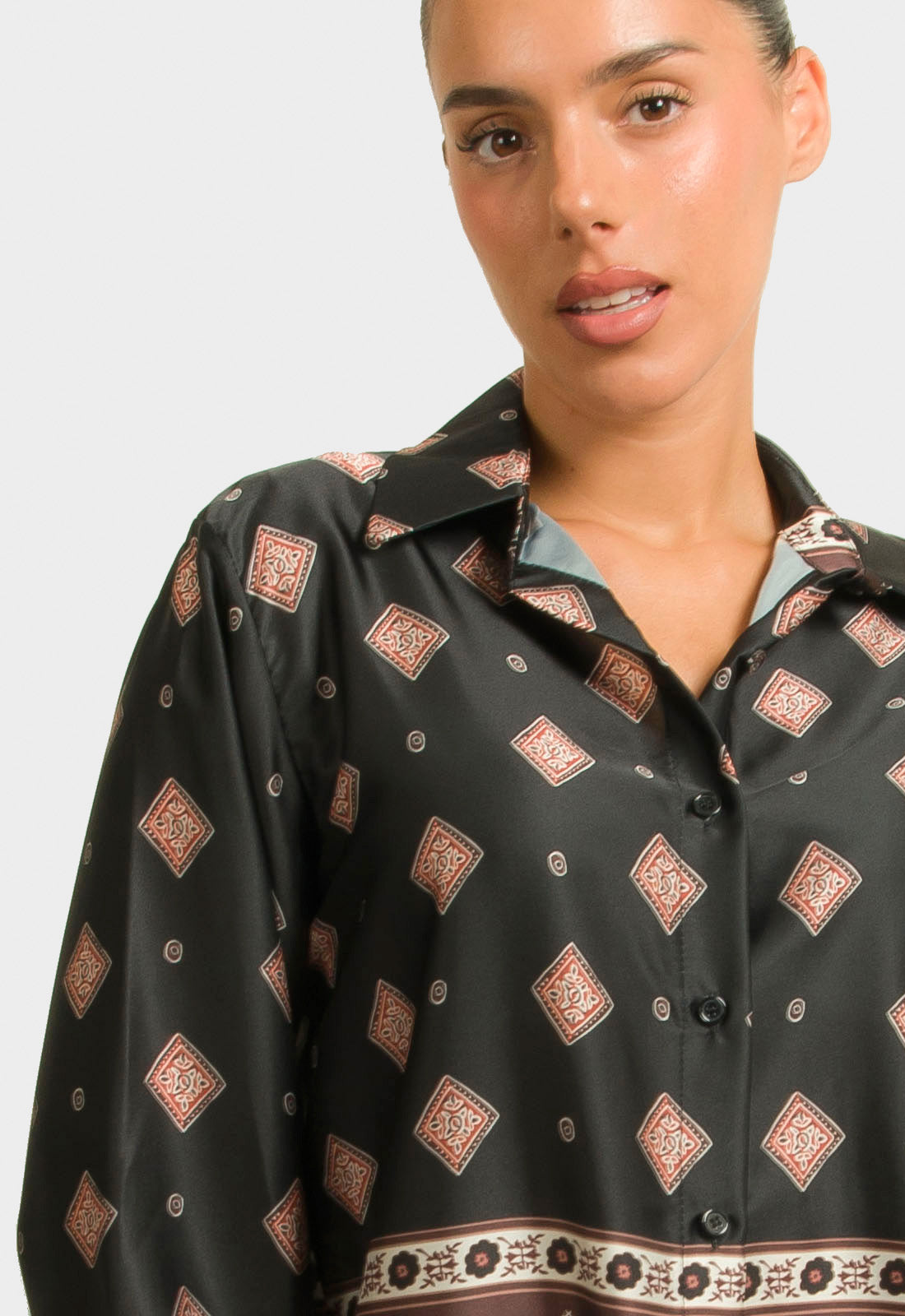 -Πουκάμισο σε σατινέ ύφασμα εμπριμέ
