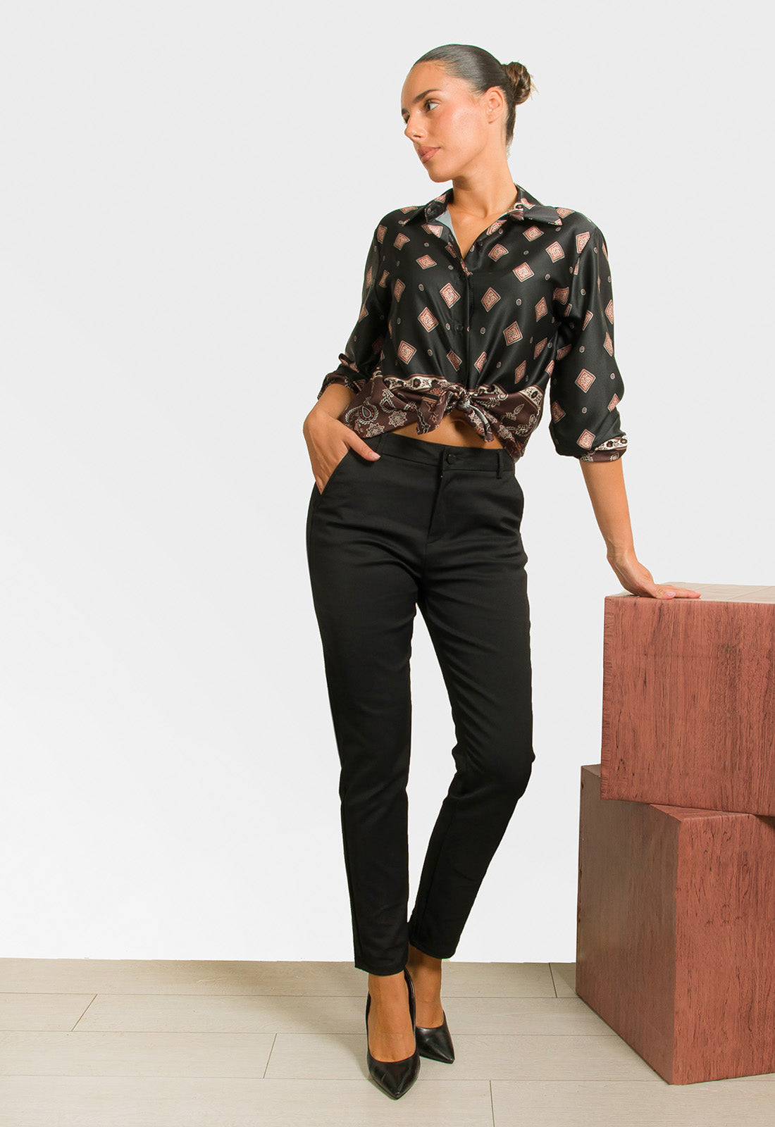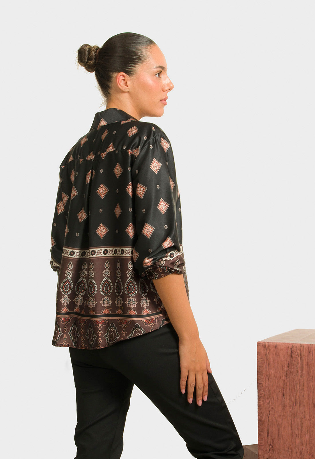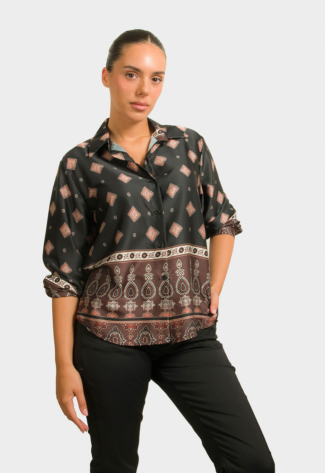 -Πουκάμισο σε σατινέ ύφασμα εμπριμέ