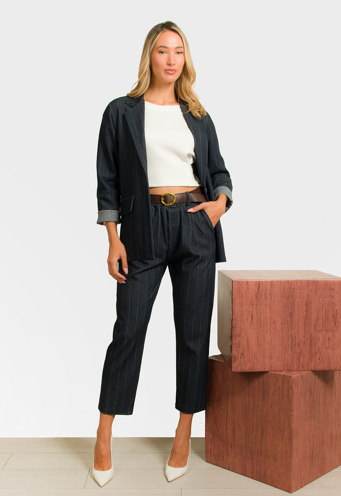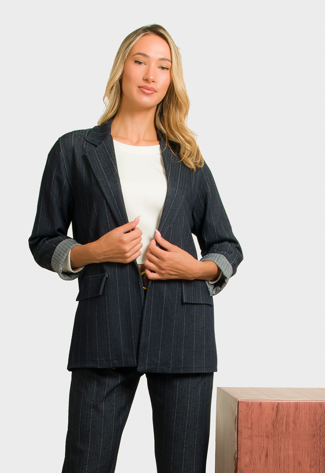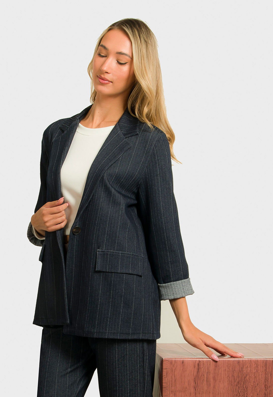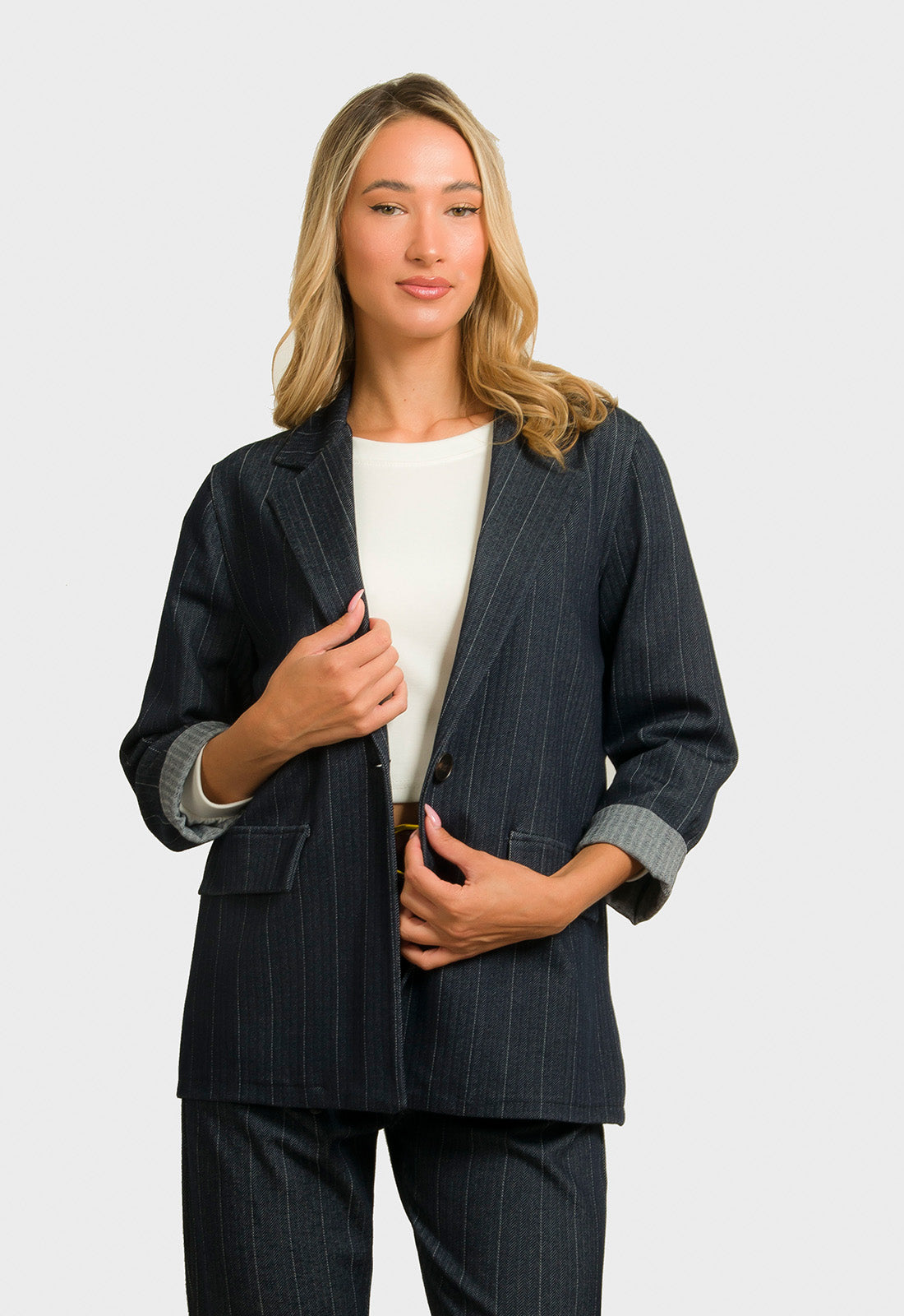 -Σακάκι σε ριγέ ύφασμα μικρής ελαστικότητας